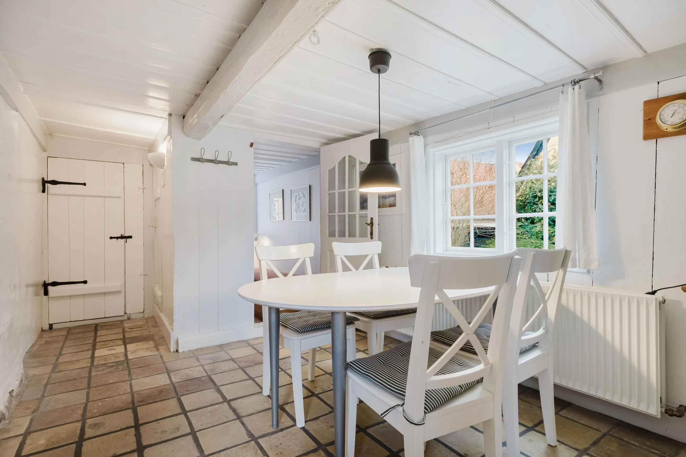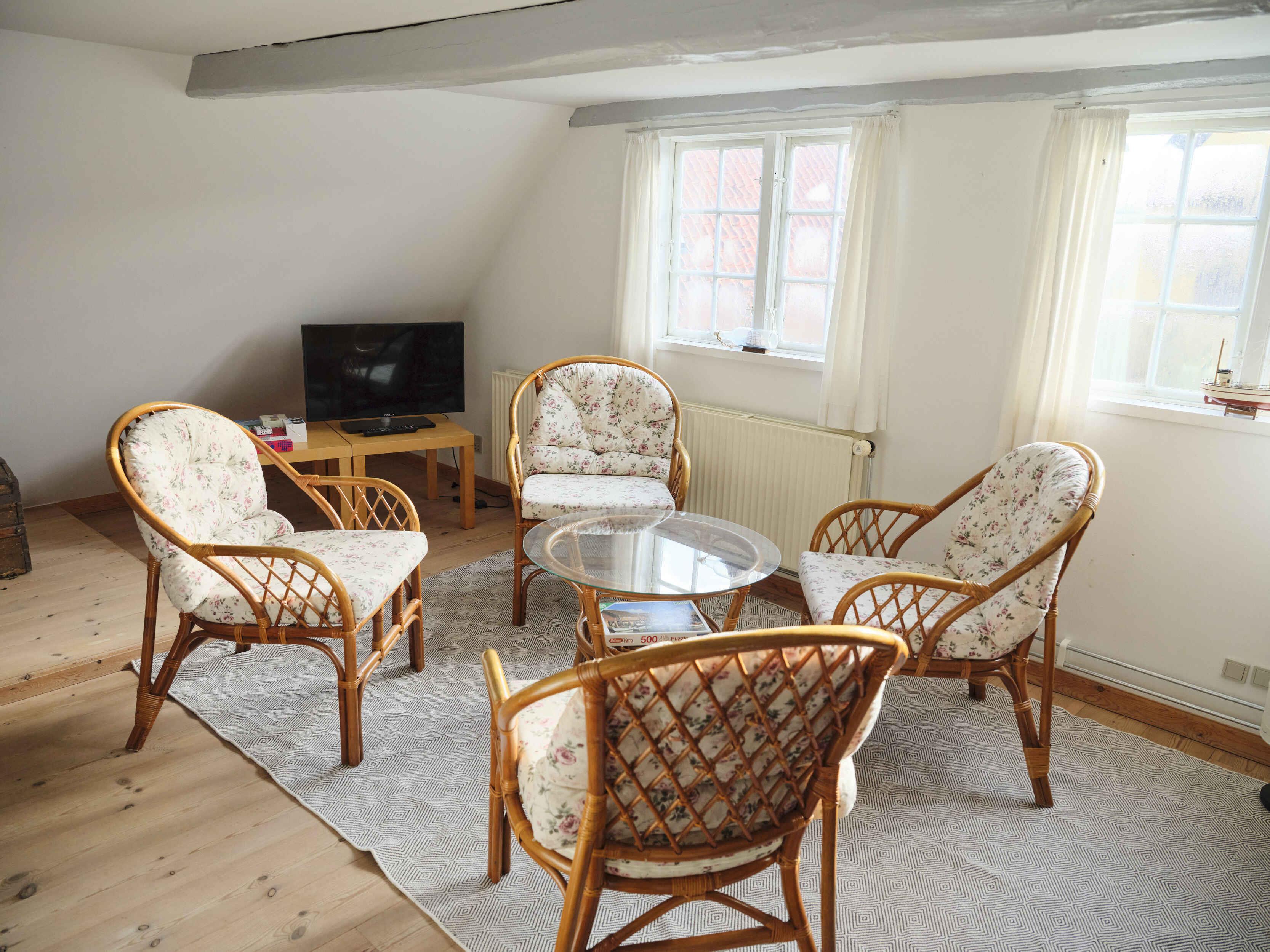 Hier wohnen Sie in einem der kleinen originalen Häuser mit traditionellem Charme und modernem Komfort. Das denkmalgeschützte Haus aus dem Jahr 1788 erstreckt sich über zwei Etagen mit 65 m² im Erdgeschoss und 35 m² im Obergeschoss. Im Erdgeschoss befinden sich zwei Schlafzimmer (ein Doppel- und ein kleines Einzelzimmer), eine gemütliche Stube, ein Esszimmer, eine gut ausgestattete Küche sowie ein modernes Bad mit Dusche und Dampfbad. Im Obergeschoss gibt es ein großes Zimmer mit zwei Betten und Platz für ein Zusatzbett. Zum Haus gehören ein geschlossener, südlich ausgerichteter Innenhof sowie ein eingezäunter Garten mit Rasen und Terrasse. Das Haus liegt in einer Gasse zwischen Hauptstraße und Marktplatz, nur wenige hundert Meter von Hafen und Strand entfernt. Die Fähre ist fußläufig erreichbar, Parken ist am Hafen möglich. Auf Ærø fahren kostenlose Busse, zudem stehen zwei Fahrräder zur Verfügung; weitere können in der Nähe gemietet werden. Achtung: Wird nicht für gewerbliche Nutzung vermietet.