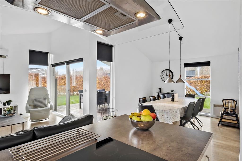 Wenn Sie dieses charmante Ferienhaus betreten, werden Sie von einer hellen und freundlichen Atmosphäre empfangen. Die offen gestalteten Räume und die geschmackvolle Einrichtung schaffen eine harmonische und ruhige Atmosphäre, in der Sie sich sofort wohlfühlen. Der zentrale Wohnbereich des Hauses, bestehend aus einer offenen Küche und einem gemütlichen Wohnzimmer, ist ideal, um sich mit Familie und Freunden zu treffen. Die großen Fenster lassen viel natürliches Licht herein und bieten einen tollen Blick auf die umliegende Natur. Hier können Sie sich mit einem guten Buch entspannen, das Abendessen am Esstisch genießen oder es sich auf dem Sofa gemütlich machen. Ein zusätzliches Plus ist das Nebengebäude, das mit zwei Schlafzimmern und einem eigenen Bad perfekt für die Privatsphäre von Familien oder Gruppen von Freunden ist.