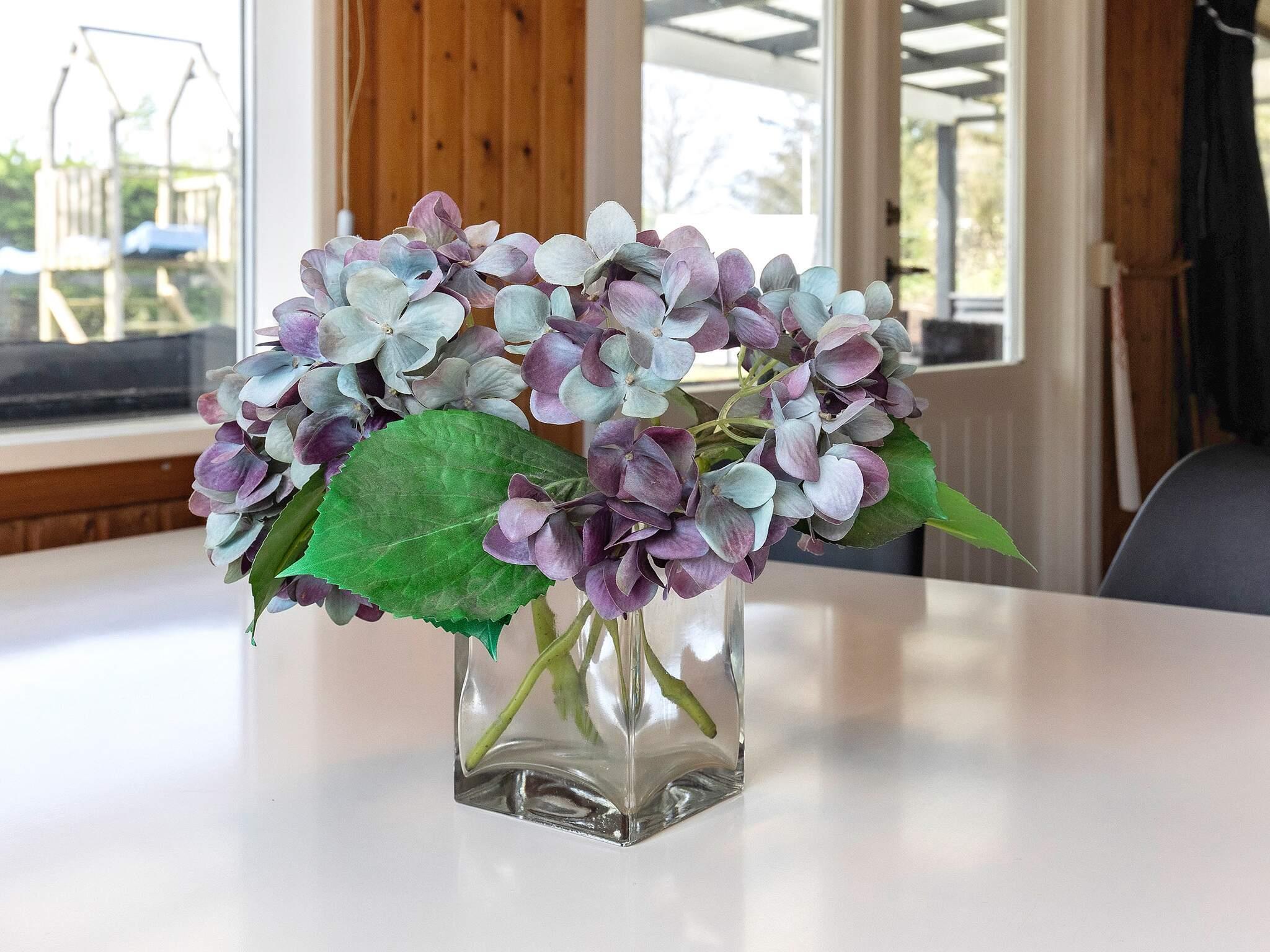 Im Inneren empfängt Sie ein helles und luftiges Wohnzimmer mit großen Fenstern, die den Blick auf den Garten freigeben. Dieser lichtdurchflutete Raum ist für Komfort und Geselligkeit konzipiert, egal ob Sie sich zum Kochen am Esstisch versammeln oder nach einem Tag voller Entdeckungen auf dem Sofa entspannen. Der offene Grundriss geht nahtlos in die Küche über, die für einfaches Kochen im Urlaub bestens ausgestattet ist. Von hier aus gelangen Sie direkt in den Vorgarten, sodass Sie den Komfort im Haus mühelos mit dem Leben im Freien verbinden können.