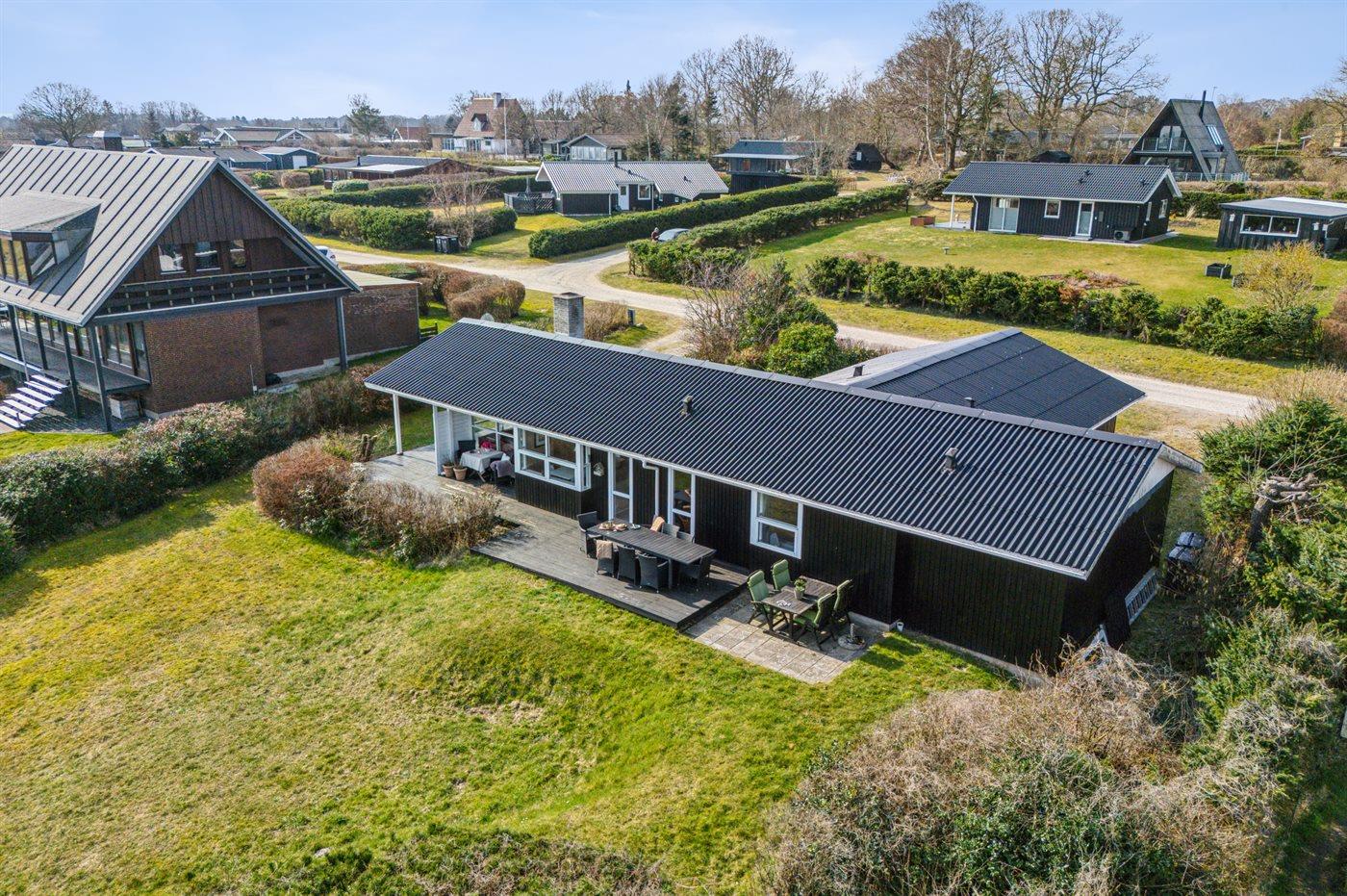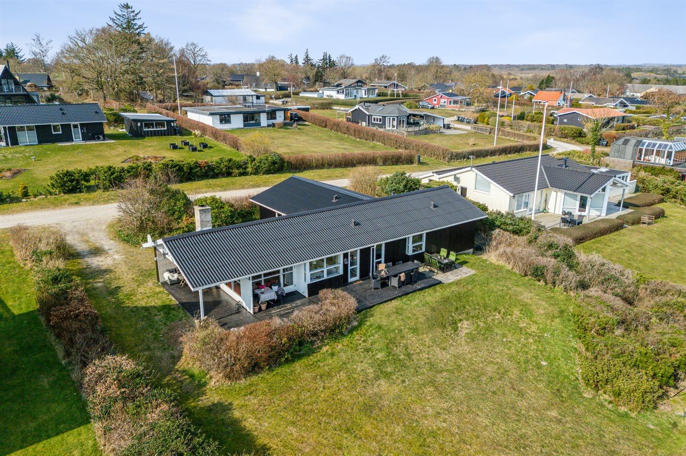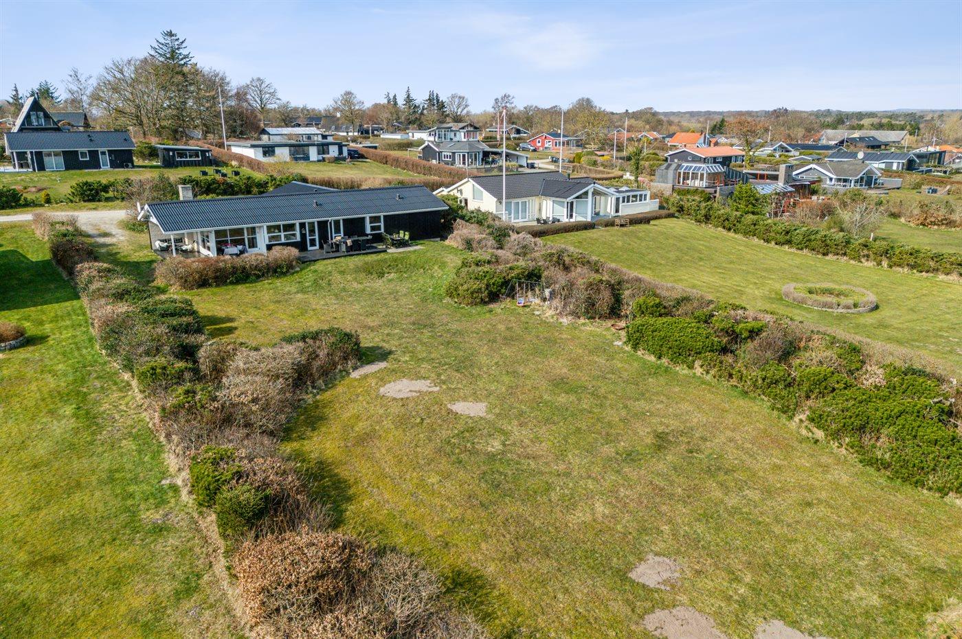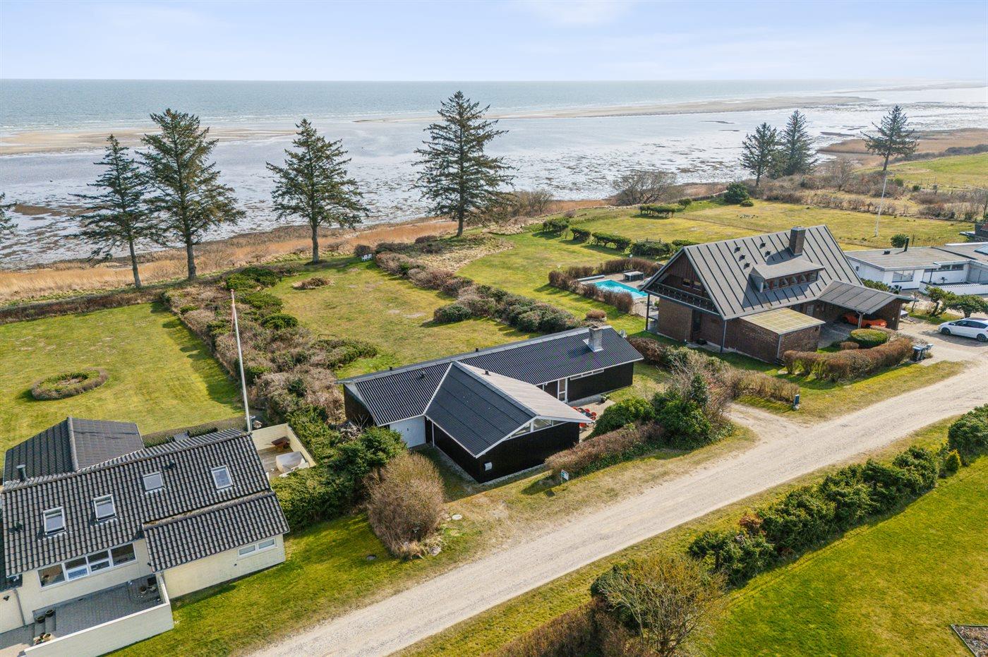 Die Ferienunterkunft liegt auf einem 2066 m² großen Naturgrundstück. Die Entfernung zum Meer beträgt 100 m. Die Entfernung zum Fjord beträgt 7700 m. Die nächste Einkaufsmöglichkeit liegt 2000 m entfernt. In einem Abstand von 15000 m gibt es einen Golfplatz. Es steht ein offenes Terrassenareal zur Verfügung. Außerdem gibt es überdachte Terrasse. Es steht ein Grill zur Verfügung. Parkplatz auf dem Grundstück.