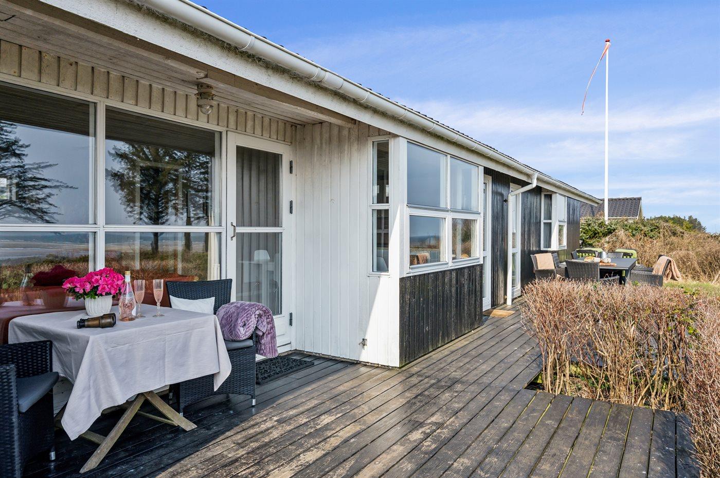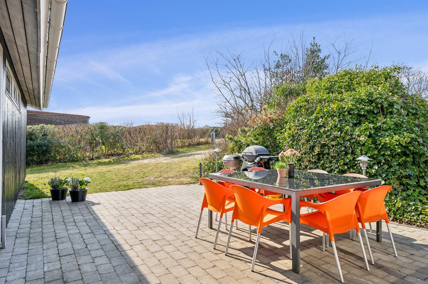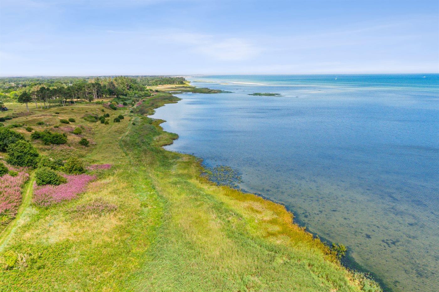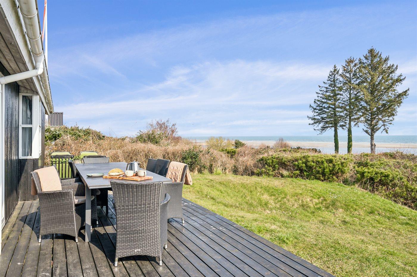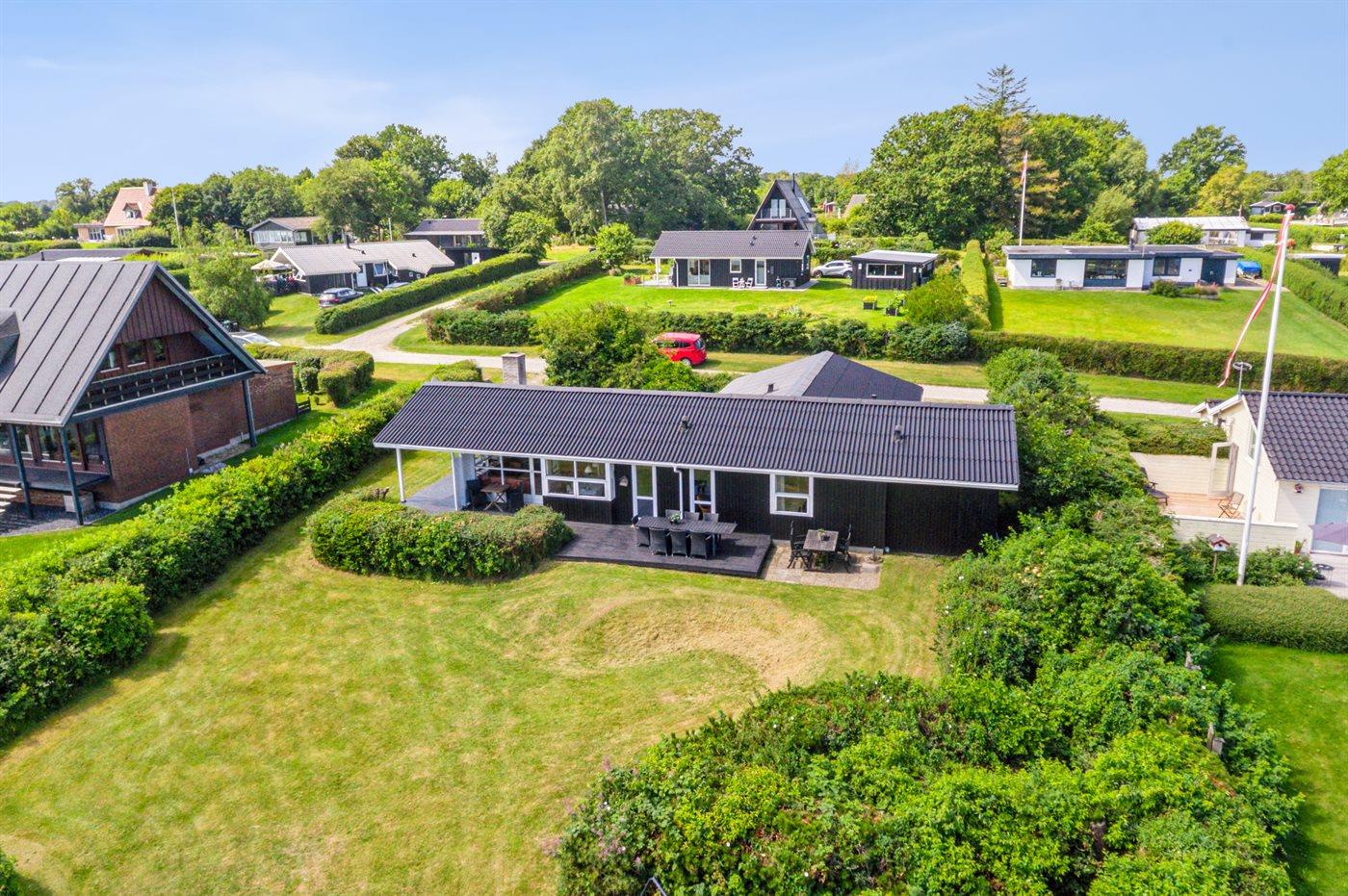 Die Ferienunterkunft liegt auf einem 2066 m² großen Naturgrundstück. Die Entfernung zum Meer beträgt 100 m. Die Entfernung zum Fjord beträgt 7700 m. Die nächste Einkaufsmöglichkeit liegt 2000 m entfernt. In einem Abstand von 15000 m gibt es einen Golfplatz. Es steht ein offenes Terrassenareal zur Verfügung. Außerdem gibt es überdachte Terrasse. Es steht ein Grill zur Verfügung. Parkplatz auf dem Grundstück.