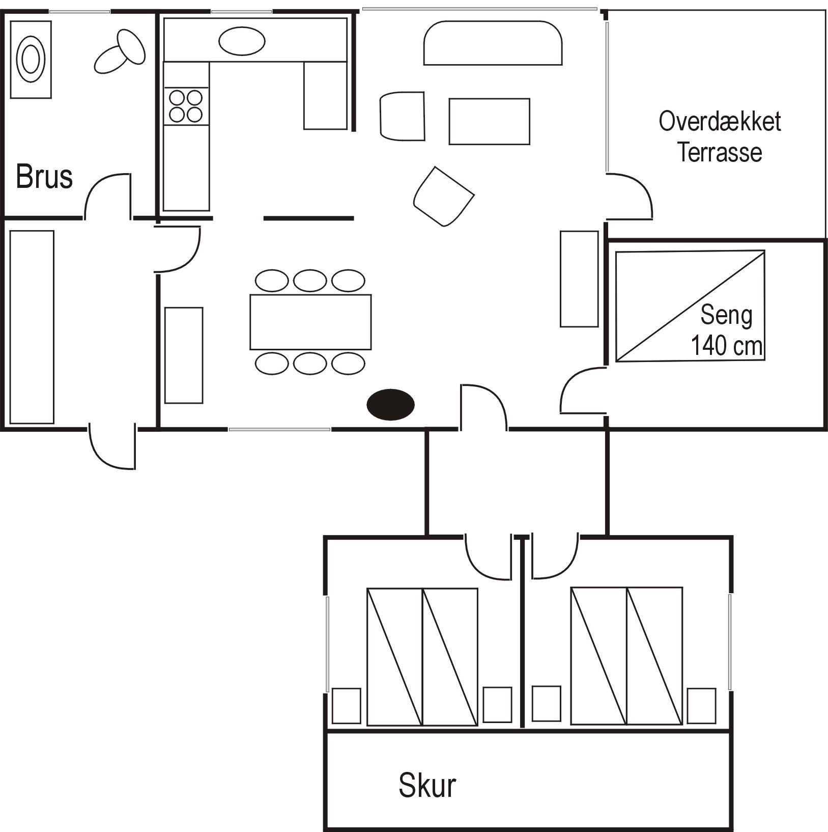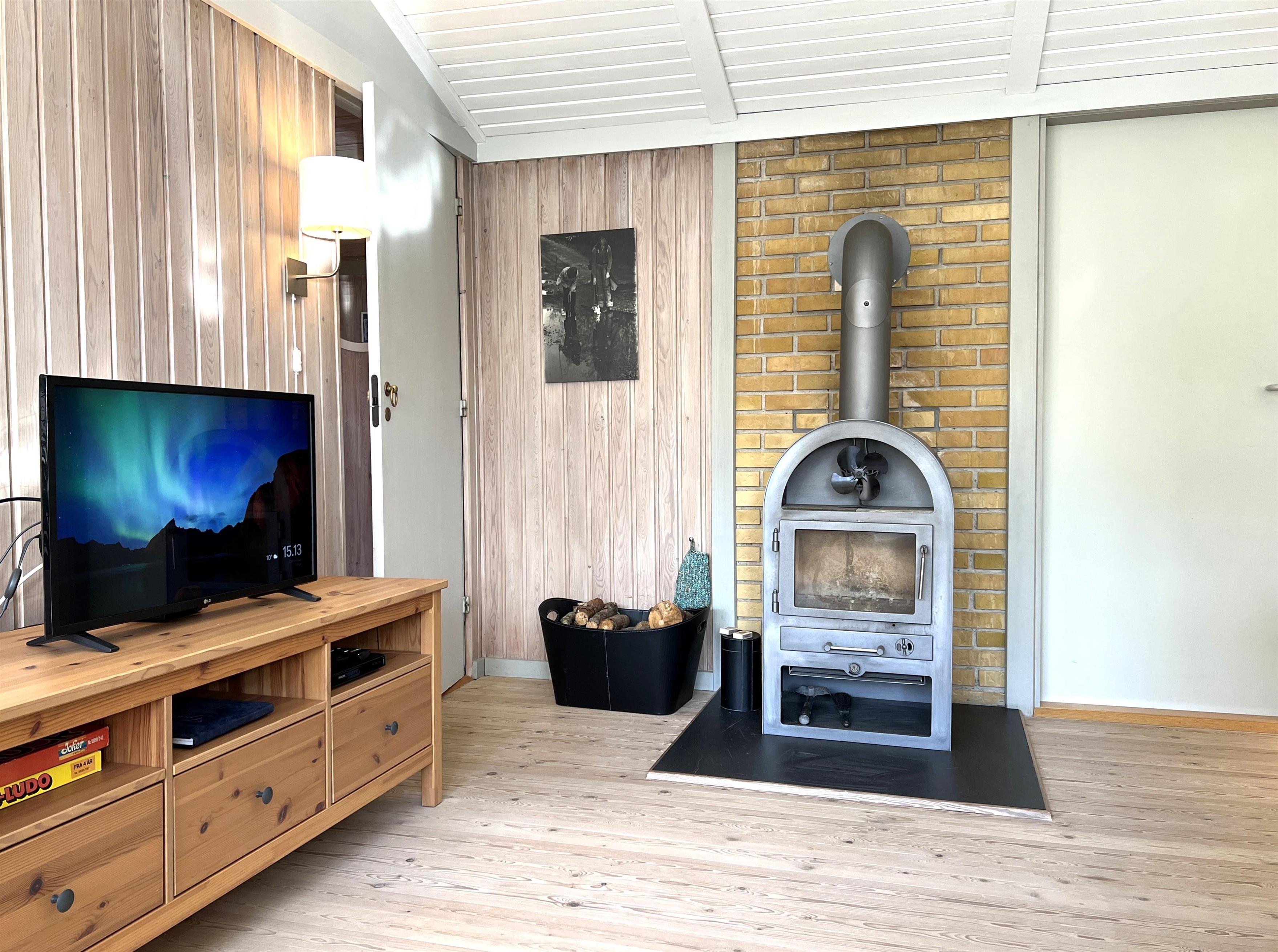 Das Haus hat eine schöne Küche/Wohnzimer mit Esstisch, samt Stube it guten Möbeln und Holzofen. 3 Schlafzimmer, alle mit Doppelbett, in einem kann man die Betten zu 2 Einzelbette umfunktionieren. Feines Badezimmer mit Dusche.