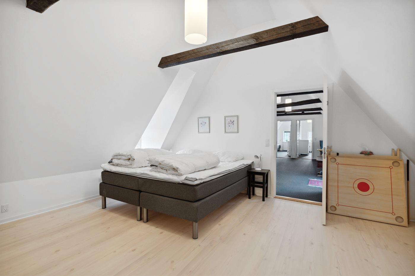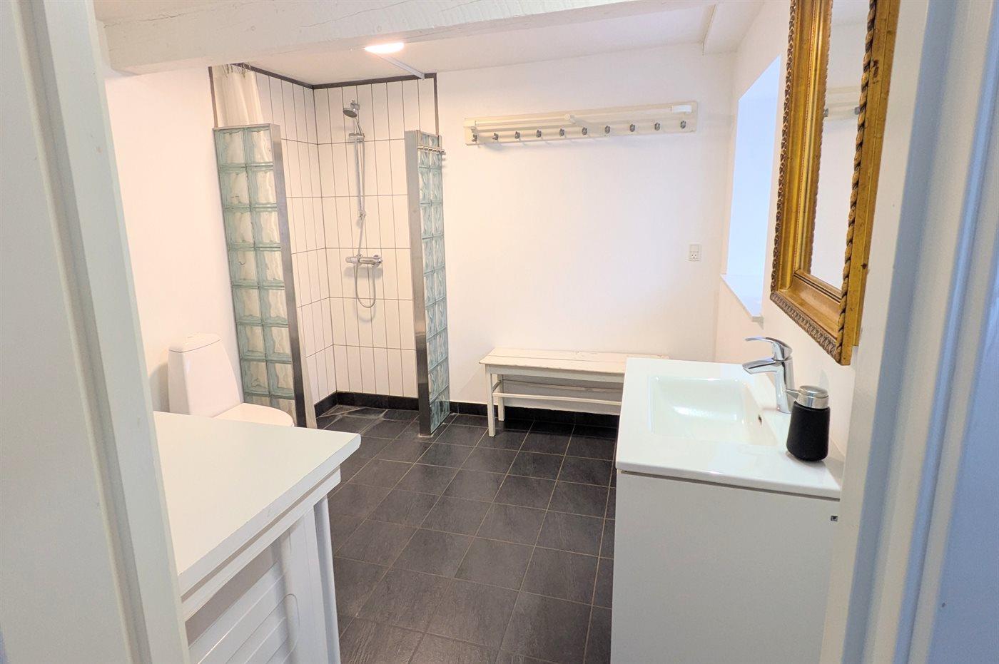 Im Erdgeschoss findet man eine geräumige Eingangshalle, ein Badezimmer mit Duschnische, eine große Küche mit Essbereich, ein gemütliches Wohnzimmer mit sichtbaren Deckenbalken und Kaminofen sowie ein Schlafzimmer. Im Obergeschoss gibt es drei gute Schlafzimmer und einen Vorraum mit Leseecke, Fernseher und Spielkonsole. Es gibt einen großen Garten mit viel Platz zum Spielen und Aktivitäten im Freien. Auf der Terrasse stehen Grill und Gartenmöbel zur Verfügung. Außerdem ist eine Außendusche vorhanden. Wenn man an das Wasser möchte kann man entweder an den Ørby Strand oder an den Haderslev Fjord fahren.
