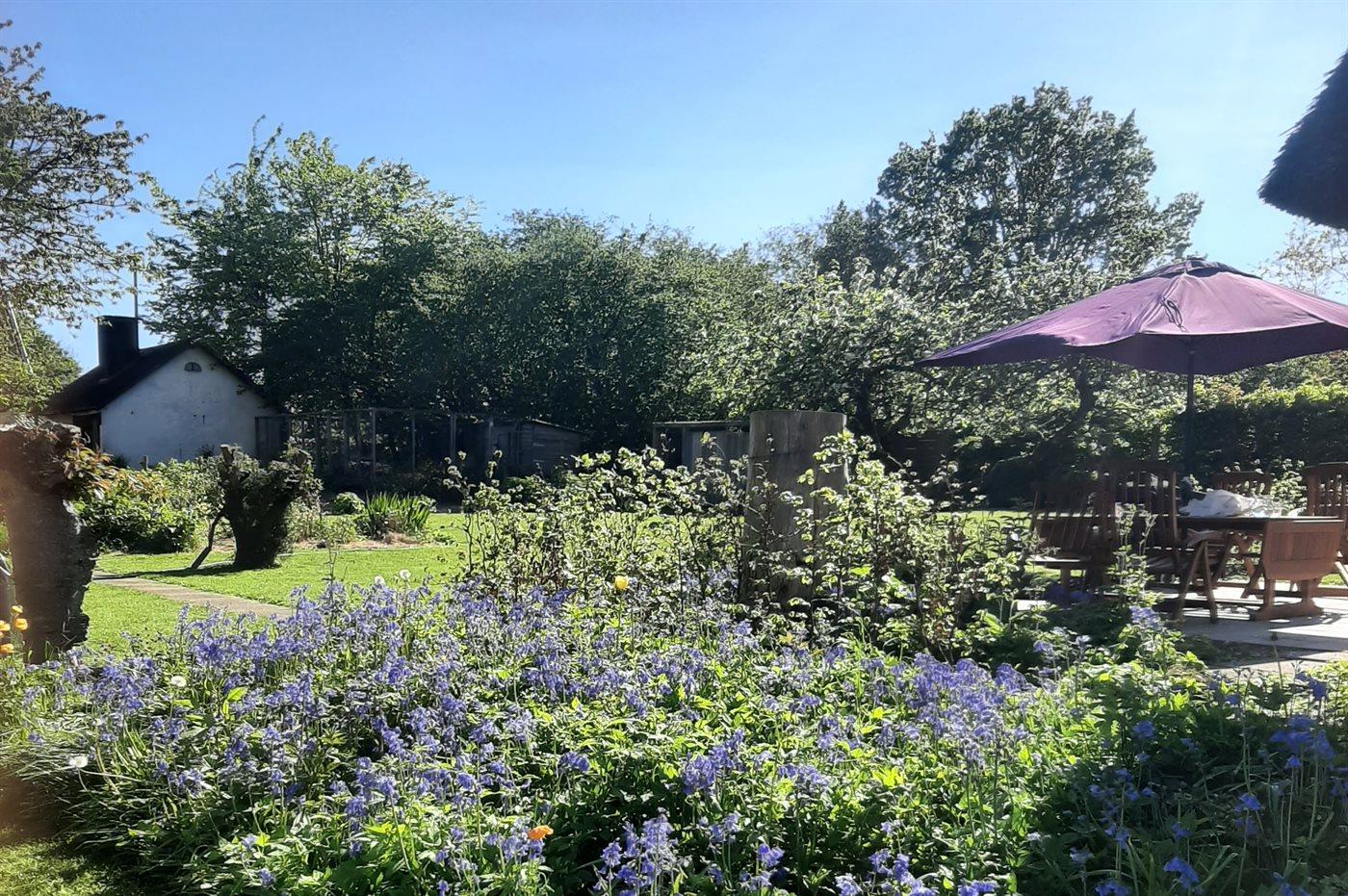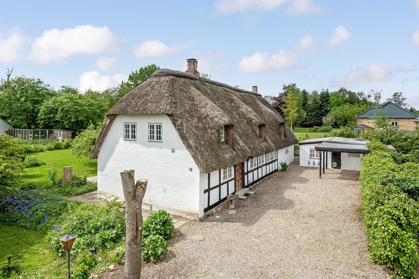 Charmantes Reetdach-Ferienhaus von 1777 mit großem Garten nahe Haderslev Fjord und Ørby Strand.