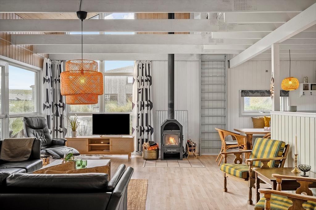 Ferienhaus in Aargab, Westjütland, mit Platz für 6 Erwachsene und 1 Haustier(e). Es erwartet Sie eine gemütliche Einrichtung mit u.a. Kamin, darüber hinaus sind Waschmaschine, Spülmaschine und Wäschetrockner in dieser Unterkunft vorhanden.