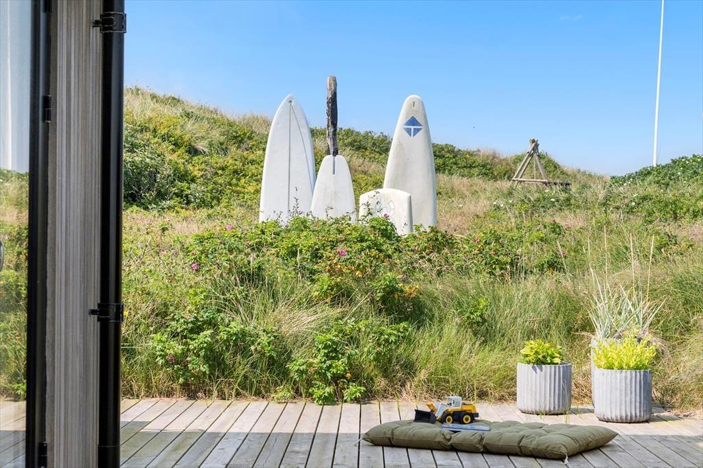 Dein Ferienhaus liegt am Rande von Mettes Bjerg, einer hohen Düne, der dein Ferienhausweg seinen Namen verdankt. Auf dem höchsten Punkt deines Naturgrundstücks erwartet dich eine Bank, auf der du dich in aller Ruhe niederlassen und vom Ausblick auf die hübsche Landschaft in den Bann ziehen lassen kannst. Die Aussicht auf den Ringkøbing Fjord ist von hier oben wunderschön. Das Wasser siehst du auch von der nach Norden und der nach Osten gerichteten Terrasse aus im Hintergrund schimmern. Die dritte Terrasse deines Ferienhauses weist gen Süden. Sie wird ein wenig durch die Dünen abgeschirmt und lädt zum Entspannen in der Sonne ein. Ein Teil der Südterrasse ist überdacht und vom Haus eingerahmt, sodass du hier lange Urlaubsabende angenehm geschützt im Kreise deiner Lieben ausklingen lassen kannst.