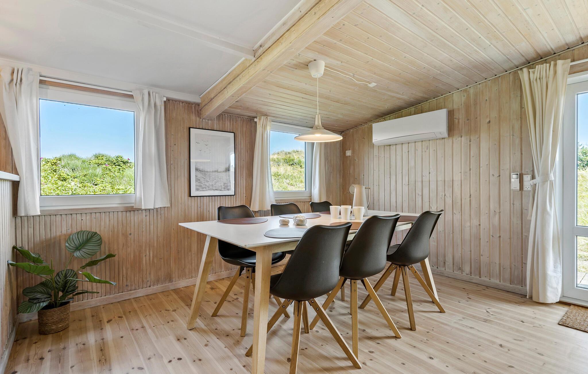 Ihr Ferienhaus in Årgab besticht durch seine gemütliche Atmosphäre und die fantastische Lage inmitten der Dünenlandschaft zwischen dem Ringkøbing Fjord auf der einen Seite und der Nordseeküste auf der anderen. Die verschiedenen Bereiche in Ihrem Ferienhaus sind getrennt, bilden aber dennoch eine harmonische Einheit. Im Wohnzimmer können Sie sich auf dem bequemen Sofa entspannen und den herrlichen Blick durch die großen Fenster genießen. Der Essbereich ist einladend und bietet ausreichend Platz für gemeinsame Mahlzeiten. Die praktische Küche ermöglicht es Ihnen, Ihre kulinarischen Fähigkeiten unter Beweis zu stellen und köstliche Mahlzeiten zuzubereiten.