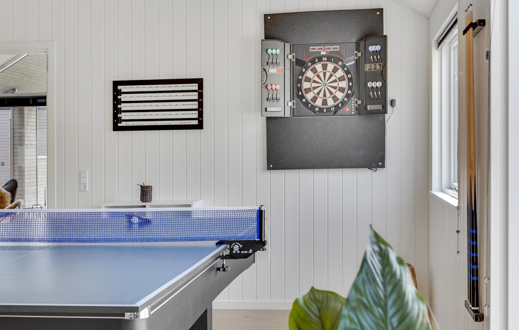 Dieses in der ersten Dünenreihe gelegene Ferienhaus verspricht einen Urlaub der Extraklasse. Lichtdurchflutete Räume sowie reichlich Platz zum Entspannen und gemeinsamen Essen sorgen dafür, dass Sie mit mehreren Familien oder vielen Freunden hier eine entspannte Auszeit genießen können. Verbringen Sie vergnügte Stunden beim Baden im Innenpool, beim Billard-, Tischtennis oder Dartspielen. Am Ende des Tages lädt die Sauna zur Erholung bei wohliger Wärme ein.