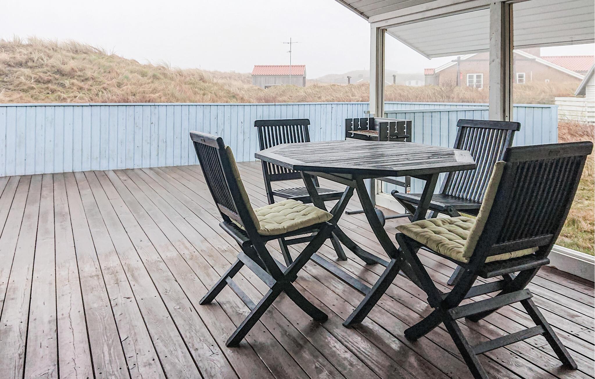 Ihre ganze Familie kann sich auf ruhige Urlaubstage in Westjütland freuen. In diesem gemütlichen Haus haben Sie viel Gelegenheit, sich drinnen zu entspannen und in der Natur neue Energie zu tanken. Das Haus liegt in einer schönen Dünenlandschaft und hat große Fenster mit Blick in die Umgebung. Setzen Sie sich mit einem guten Buch ins Wohnzimmer und genießen Sie das Licht und das gemütliche Knistern des Kaminfeuers im Holzofen.