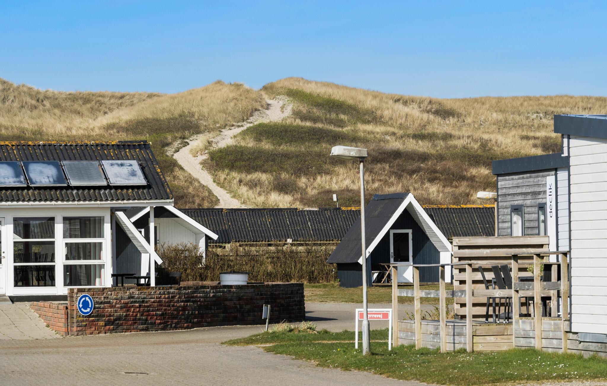 Wo Sie sich auf dem Platz auch aufhalten, hier können Sie überall das Brausen des Meeres hören, denn diese Hütten sind nur von den Dünen von der Nordsee getrennt. Von dort haben Sie auch eine unglaubliche Aussicht über die unendlich langen, weißen Sandstrände und die Nordsee auf der einen Seite und den Ringkøbing Fjord auf der anderen. Hier gibt es den ganzen Tag kostenlose Aktivitäten, besonders für Kinder, die ihnen während des Aufenthalts und auch hinterher dauerhafte Freundschaften schaffen. Falls Sie surfen, Rad fahren oder im Meer baden wollen, haben Sie auf diesem gut ausgestatten Campingplatz die besten Möglichkeiten. Sie können gratis im herrlichen, überdachten Erlebnisbad baden, auf dessen 1000 m² es eine Rutsche, Sauna, Dampfbad und Whirlpool gibt - denken Sie also an Badekleidung.