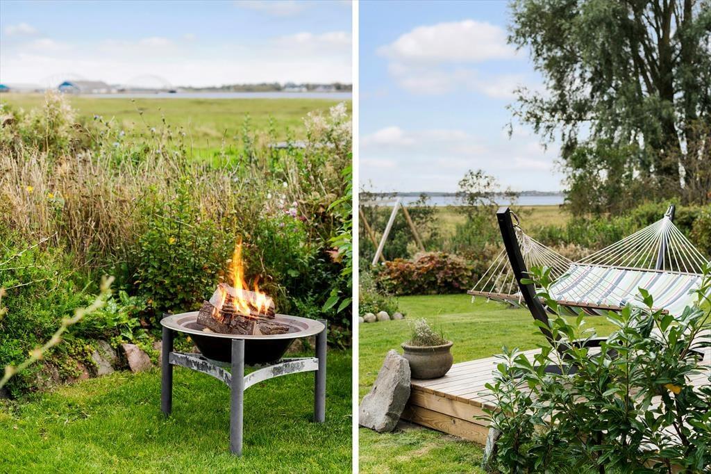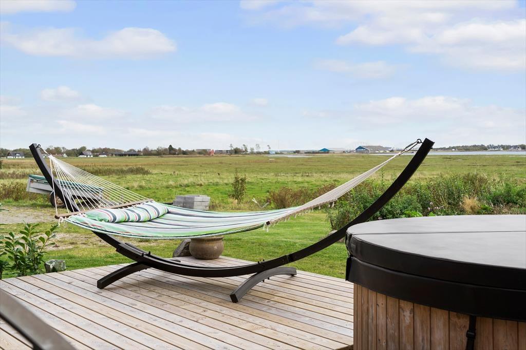 Das Außenbereich dieses Ferienhauses ist ein wahres Juwel, wo Sie inmitten der idyllischen Natur entspannen können. Die großzügigen Terrassen laden dazu ein, den Morgenkaffee zu genießen, während die Sonne über dem Fjord aufgeht, und den Tag mit einem schönen Sonnenuntergang in bester Gesellschaft zu beenden. Das luxuriöse Wildnisbad ist ein besonderes Highlight, in dem Sie im warmen Wasser entspannen können, während Ihr Blick über die ruhigen Gewässer des Limfjords schweift.