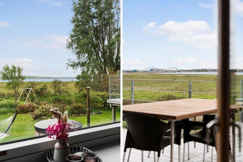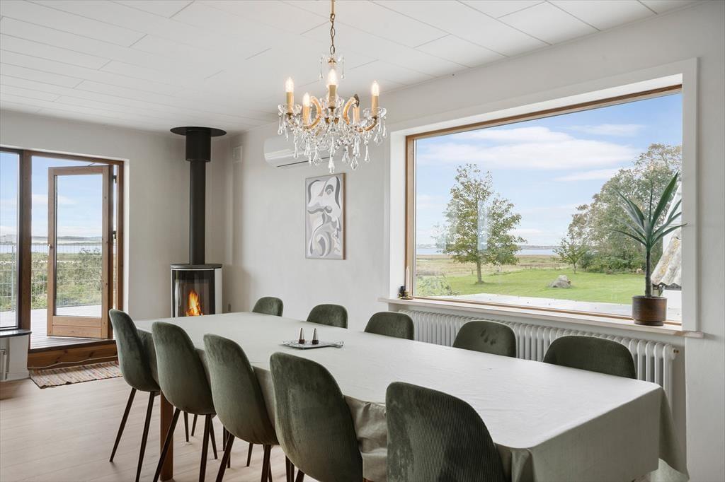 Beim Betreten des Hauses werden Sie von einem hellen und offenen Wohnzimmer empfangen, in dem große Fenster die Schönheit des Fjords und der umliegenden Natur ins Innere holen. Das Haus wurde mit Rücksicht auf den ursprünglichen Charakter renoviert. Das Wohnzimmer ist mit der funktionalen und gute ausgestatteten Küche verbunden, sodass Sie bequem kochen und gleichzeitig Teil der Gesellschaft bleiben können. Von der Couch aus können Sie den beeindruckenden Panoramablick auf den Limfjord und die nahegelegene Aggersundbrücke genießen oder sich am Kamin wärmen, während Sie mit Familie oder Freunden Brettspiele spielen. Das Haus lädt zu gemeinsamer Zeit ein. Die vier hellen Schlafzimmer sind auf Komfort ausgelegt, damit Familie oder Freunde eine erholsame Nachtruhe genießen können. Ein gut ausgestattetes Badezimmer rundet die Ausstattung ab und sorgt für eine angenehme Basis für Ihren Urlaub.