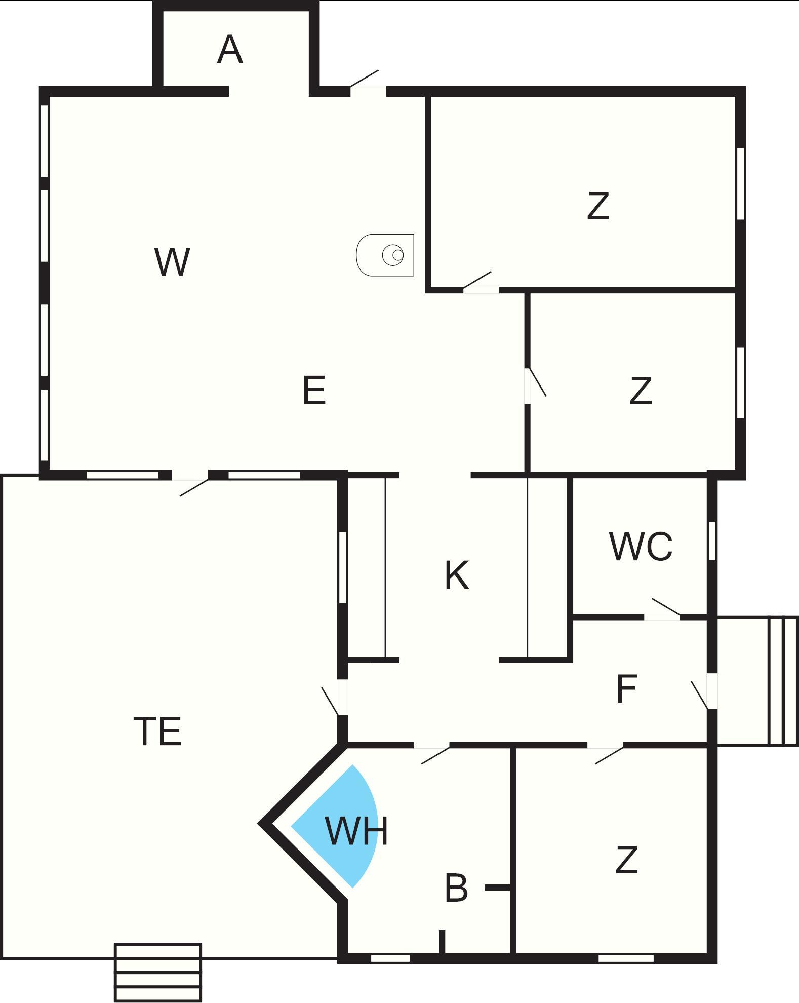 Bad: WC, Waschb., Dusche, Fußbodenheiz.