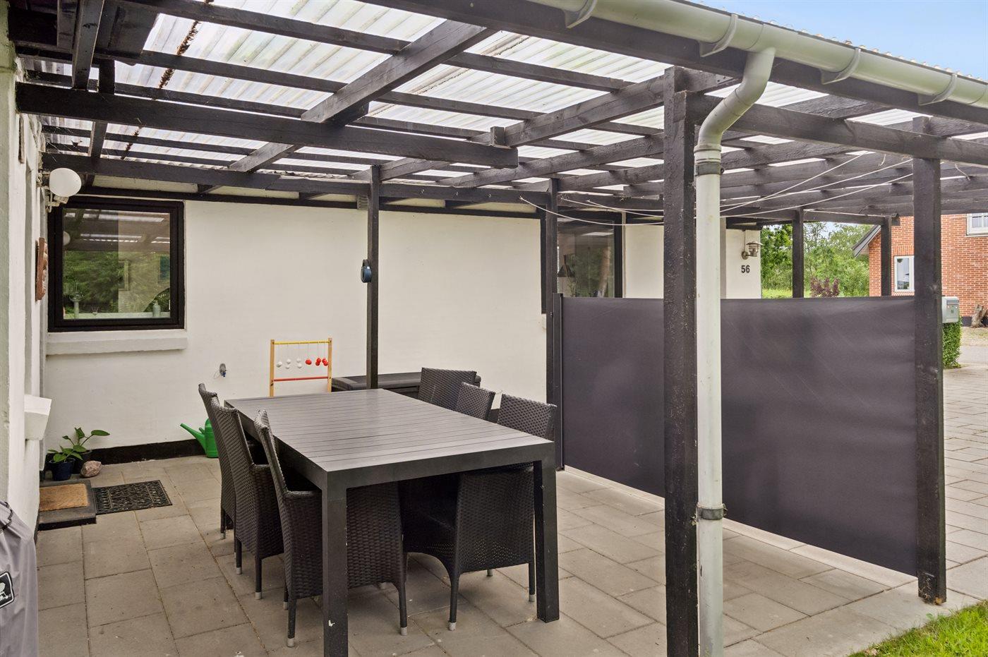 Das Ferienhaus verfügt über eine wirklich schöne Terrasse mit Gartenmöbeln und 2 Sonnenliegen, auf der man die wunderschöne Aussicht auf das Wasser in vollen Zügen genießen kann, und auf der anderen Seite des Hauses gibt es eine weitere schöne Terrasse, die überdacht und völlig ungestört ist, da das Grundstück an den Wald grenzt. Hier kann man die Stille in vollen Zügen genießen, und es gibt immer die Möglichkeit, einen geschützten Platz zu finden. Das Feriengebiet lädt zu Spaziergängen in der schönen Natur ein, und ein besonderes Erlebnis ist ein Besuch der Hvidbjerg Düne, die 7 Kilometer vom Ferienhaus entfernt liegt.