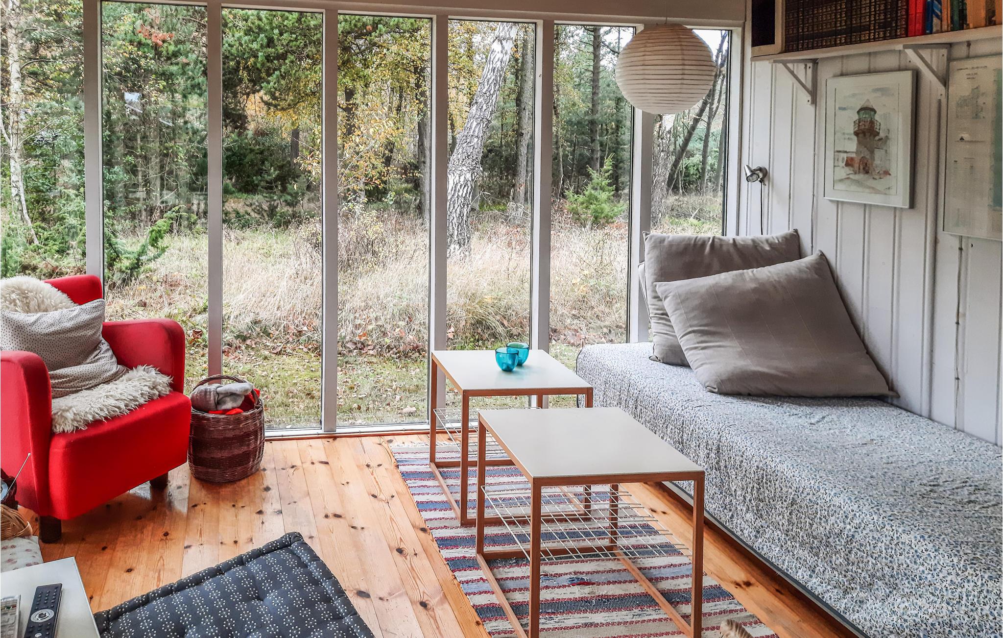 Machen Sie es sich in diesem einfachen und gemütlichen Haus, das Sie nur einen kurzen Spaziergang vom Strand empfängt, mit Ihren Lieben eine schöne Zeit. Nach Ihren Ausflügen auf der Insel lädt die Sitzgruppe zum Entspannen ein. Lassen Sie Ihren Blick durch bodentiefe Fenster über die Umgebung schweifen und sorgen Sie mit einem Feuer im Kaminofen für eine besonders behagliche Atmosphäre. Nehmen Sie das Abendessen im Freien auf der Terrasse ein und genießen Sie die langen Sommerabende.