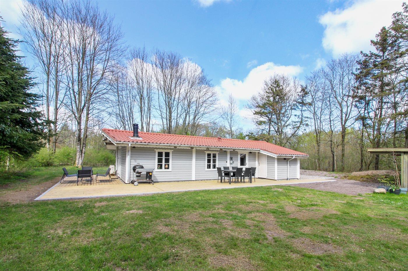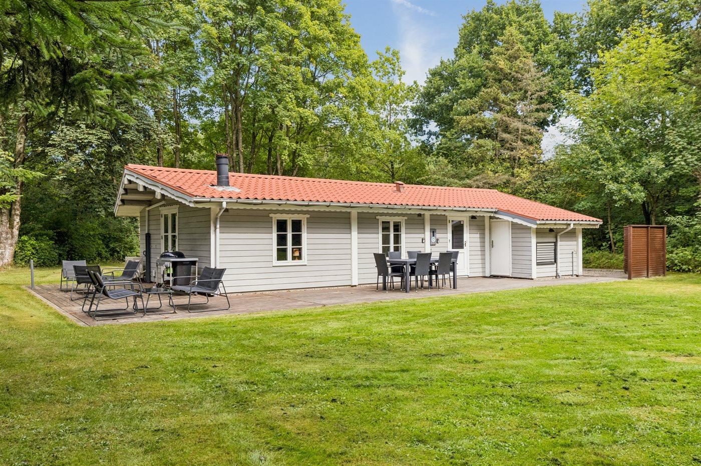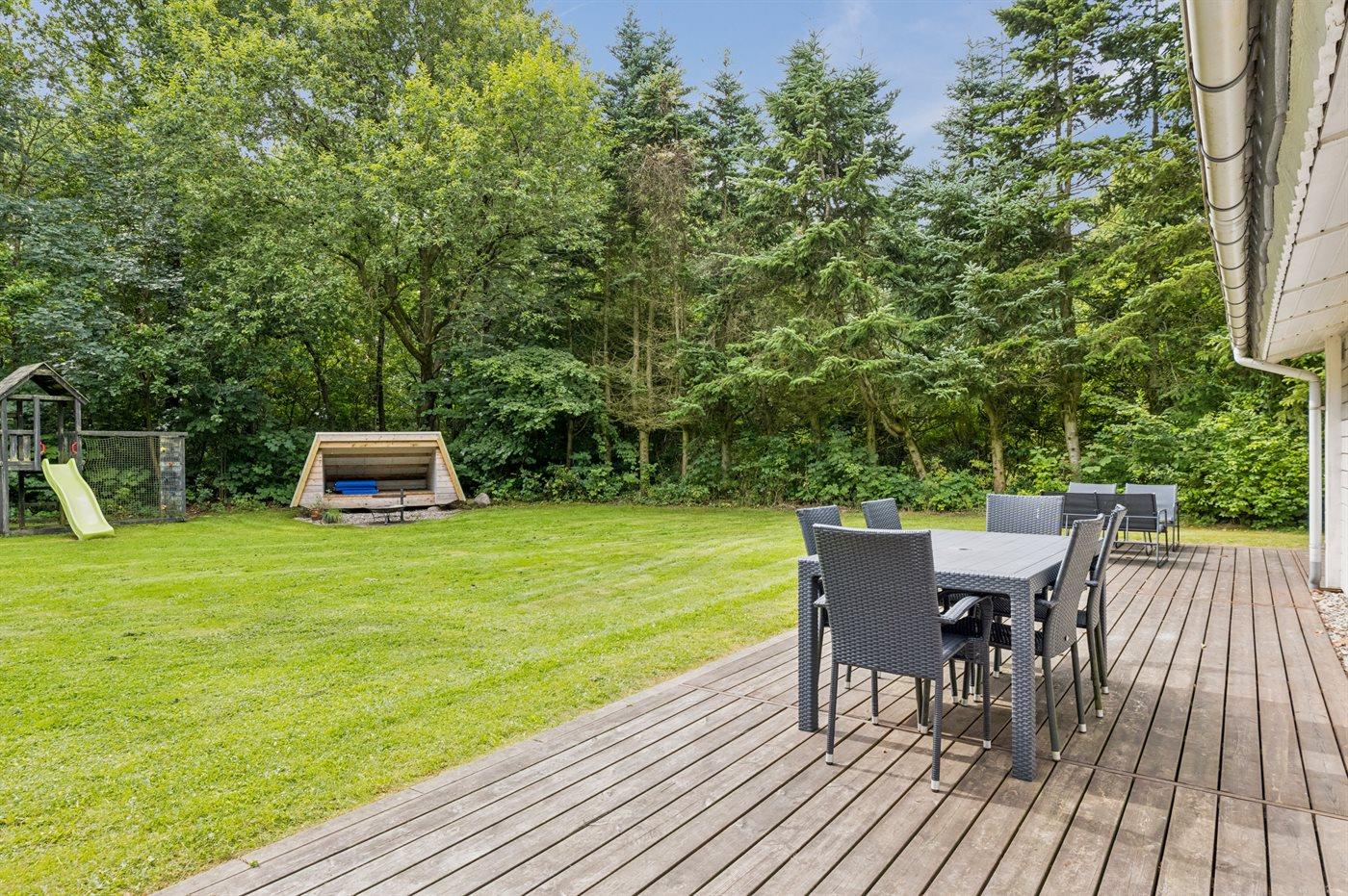 Das Haus liegt auf einem 875 m² großen Naturgrundstück und verfügt über eine große Holzterrasse, die nach Süden und Westen ausgerichtet ist. Im Garten findest du eine Windschutzhütte sowie eine Feuerschale mit einem großen Rost, auf dem du dein Essen oder Stockbrot zubereiten kannst. Außerdem steht ein Grill zur Verfügung.