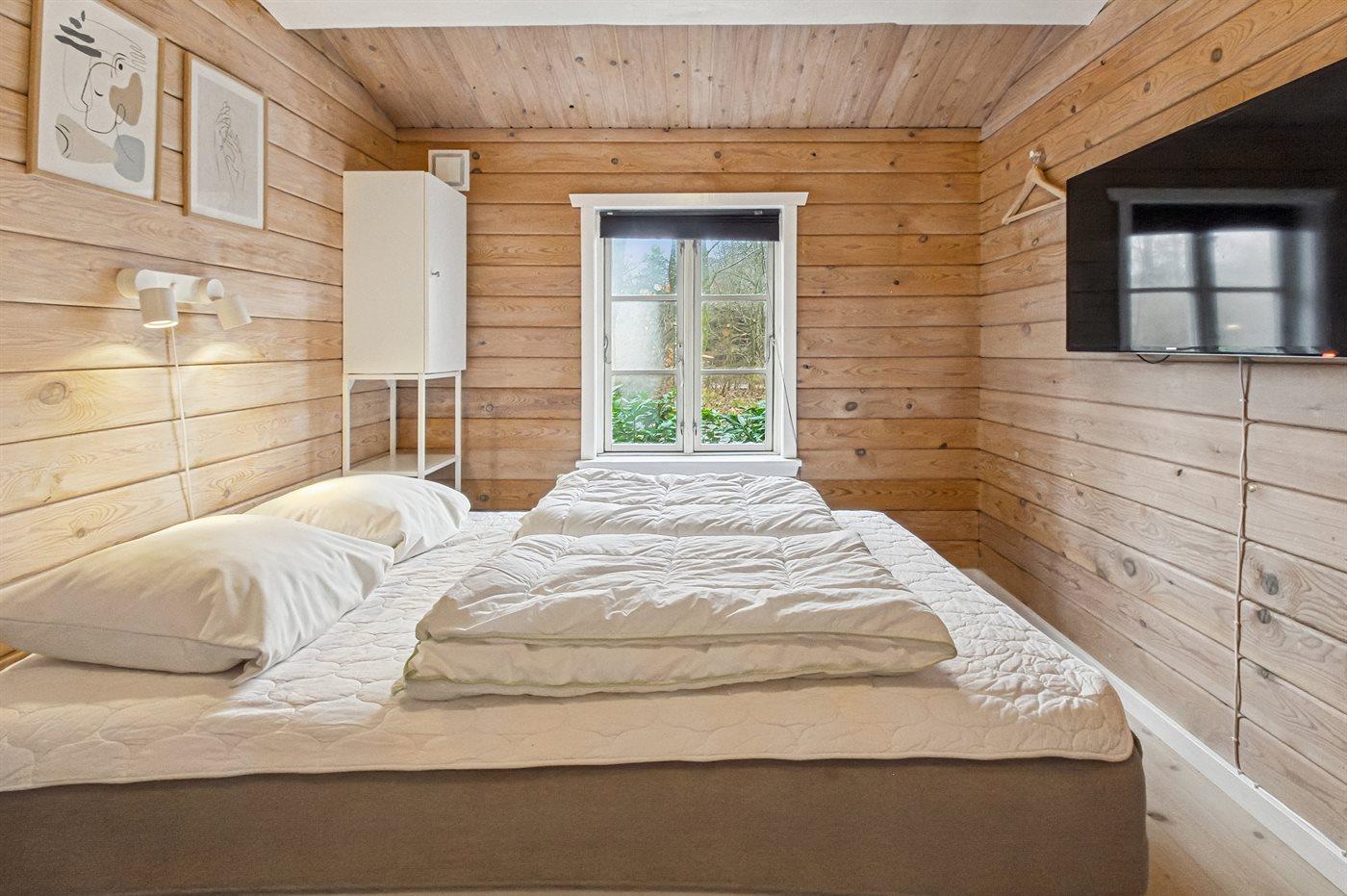 Im Wohnzimmer gibt es einen neuen Fernseher mit eingebautem Google TV mit einigen dänischen, norwegischen und deutschen Fernsehsendern. Außerdem kannst du über dein Handy eigene Streaming-Dienste nutzen.