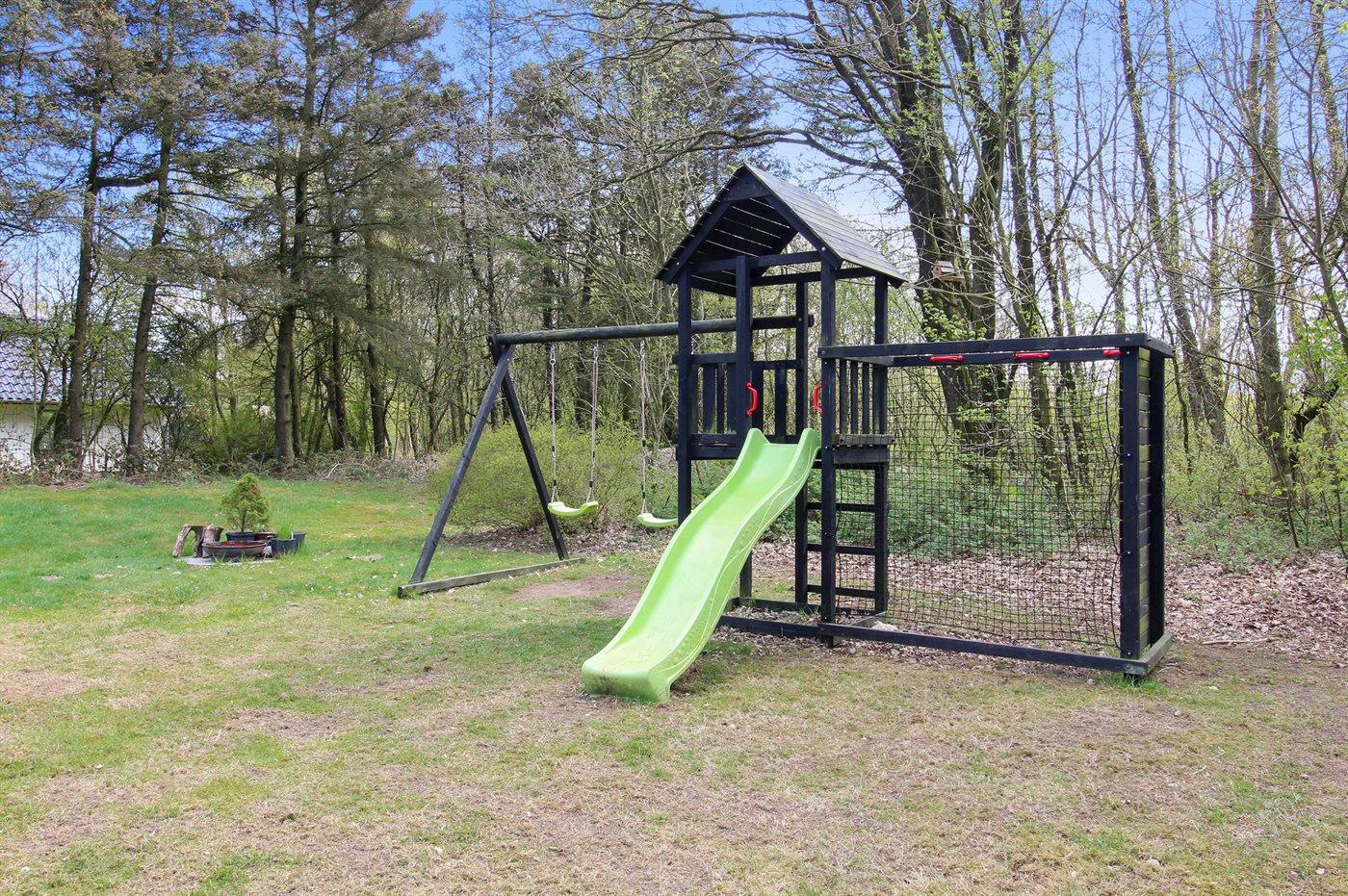Im Garten gibt es auch Schaukeln, eine Rutsche und einen Spielturm für die kleinen Feriengäste. Parkplätze sind am Haus vorhanden.