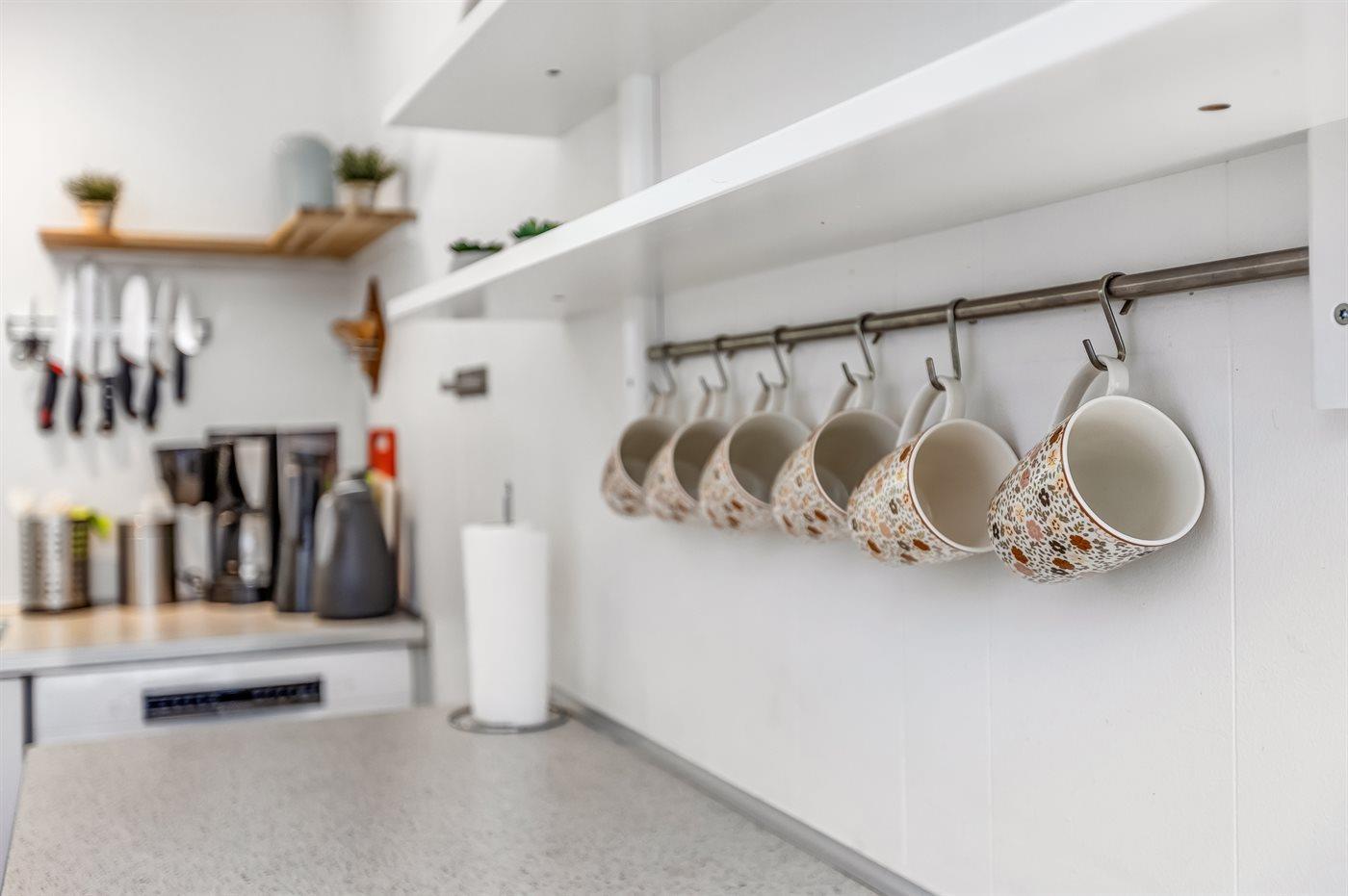 Die Küche ist mit Kühlschrank ausgestattet. Außerdem gibt es 4 Induktions-Kochzonen, Umluftofen, Mikrowelle, Airfryer sowie Geschirrspüler.