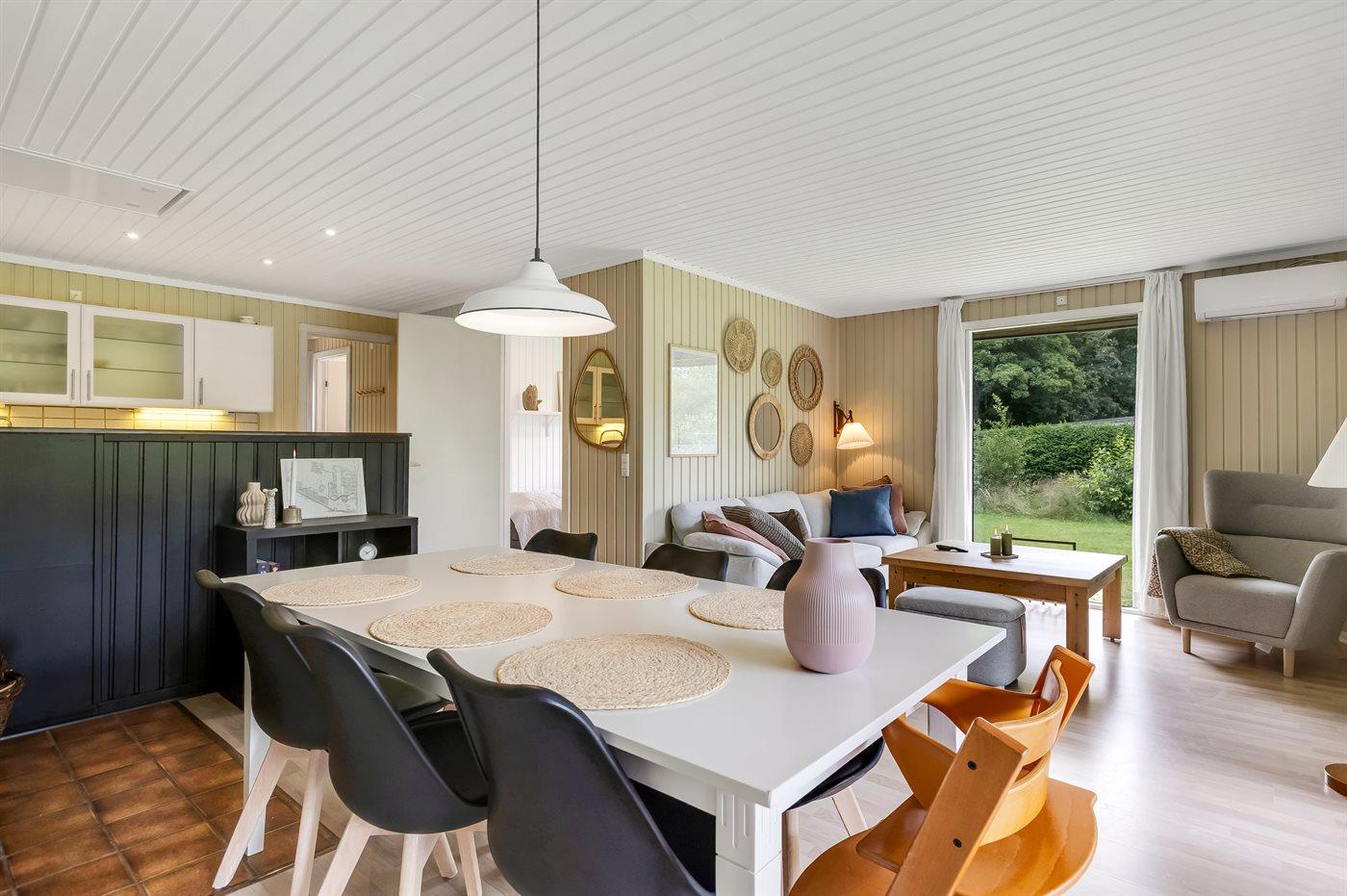 Das Ferienhaus eignet sich für 6 Personen sowie 1 Kleinkind bis zu 3 Jahren. Die Ferienunterkunft hat eine Wohnfläche von 80 m² und wurde 1978 gebaut. 2025 wurde die Ferienunterkunft teilweise renoviert. Es ist erlaubt 2 Haustiere mitzubringen. In der Ferienunterkunft ist eine energiesparende Luft zu Luft Wärmepumpe installiert. Die Ferienunterkunft ist mit Waschmaschine ausgestattet. Tiefkühlmöglichkeit mit 31 Liter Nutzinhalt. Es gibt außerdem einen Kaminofen. Für die jüngsten Feriengäste ist 1 Kinderhochstuhl vorhanden.