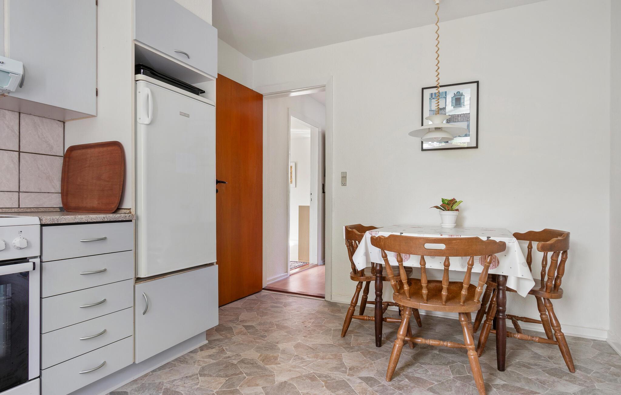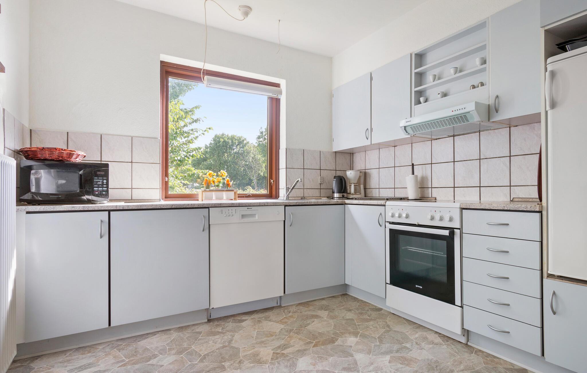 Ihr Ferienhaus in der Ortschaft Flauenskjold im Norden Jütlands ist der ideale Ort für einen entspannten Urlaub. Genießen Sie den Morgen mit einem Frühstück in der praktischen Essküche oder am Esstisch, wo Sie den Blick über den Garten schweifen lassen können. Der Holzofen sorgt an kühleren Abenden für eine behagliche Atmosphäre, während Sie sich auf den bequemen Sofas zurücklehnen.