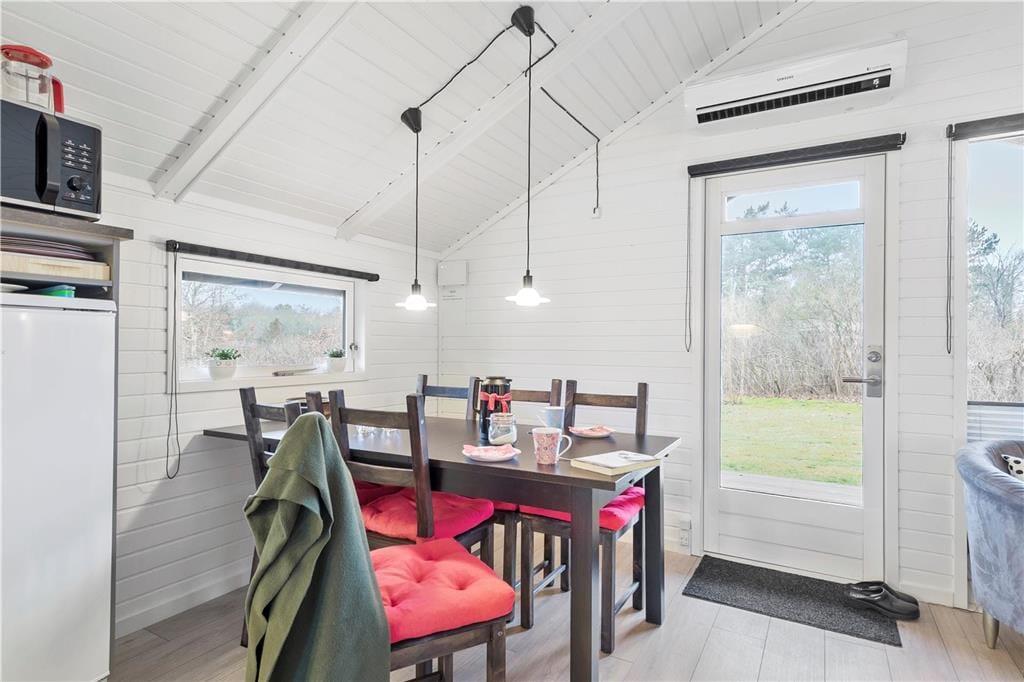 Das Ferienhaus begrüßt Sie mit einem schönen Wohnraum, der unter anderem einen Fernseher, eine Wärmepumpe und eine Schlafnische mit einem Doppelbett umfasst. In den Wohnraum ist auch die schöne, offene Küche integriert. Ein wunderbar helles Badezimmer mit einer Dusche und zwei schöne Schlafräume stehen ebenfalls zu Ihrer Verfügung. Einer der Schlafräume beinhaltet ein Doppelbett. Im zweiten Schlafraum (Nebengebäude) sind Einzelbetten untergebracht. In den Schlafräumen sind keine Kleiderschränke vorhanden, dafür aber Regale und Haken. Die attraktive Terrasse des Hauses unterteilt sich in zwei Bereiche, und zwar in einen überdachten Bereich und in einen großen, offenen Bereich in Form eines Innenhofes, der komplett geschlossen ist und sich somit insbesondere bei Familien mit abenteuerlustigen Kleinkindern großer Beliebtheit erfreuen wird. Der Garten ist angenehm groß und eignet sich gut zum Umhertollen und Spielen. Stangentennis und Badmintonschläger samt Netz sind vorhanden.