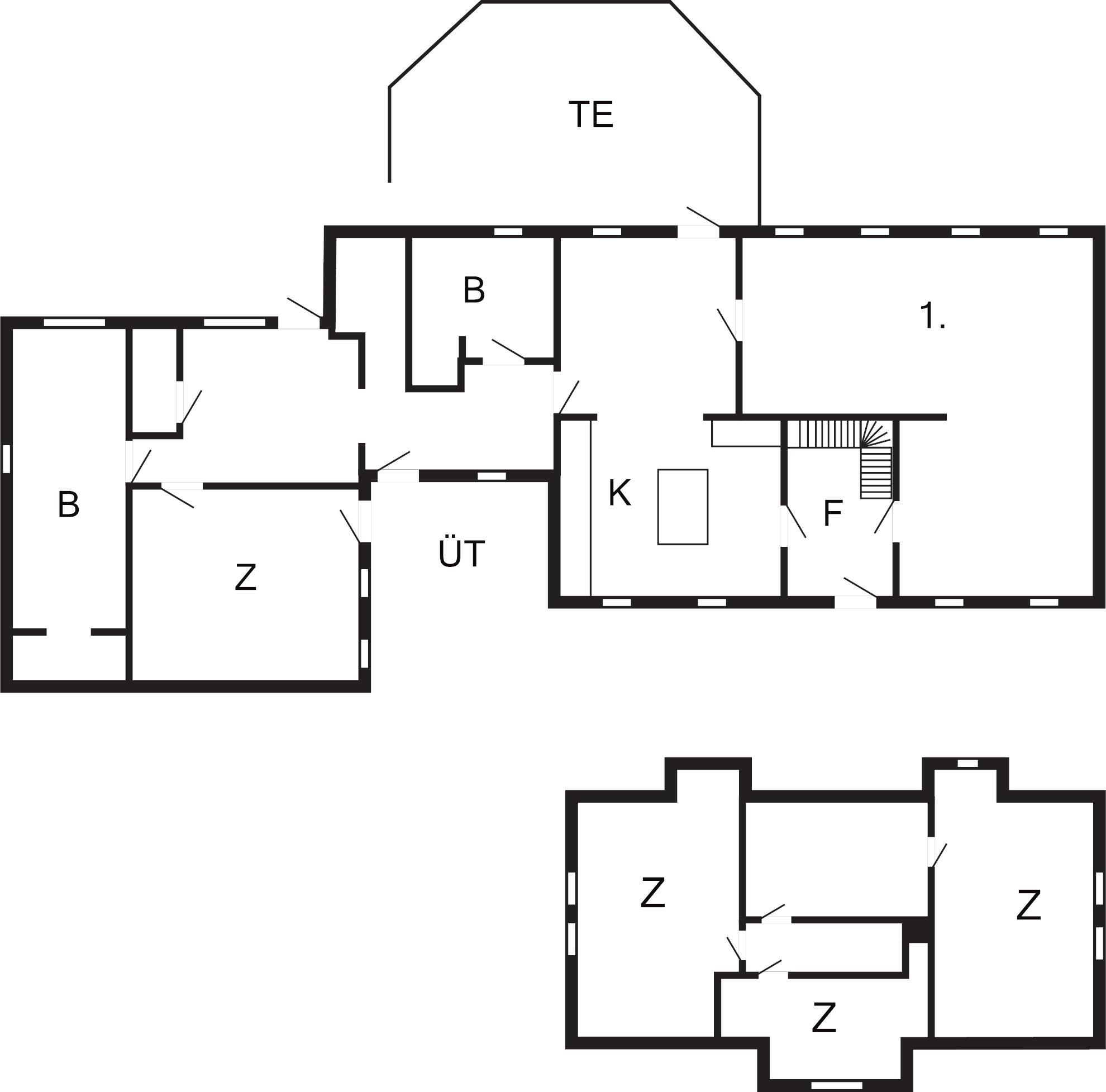 4 Schlafz.: (1DB)+(1DB)+(1DB+1B)+(1DB+1B), Kinderbett