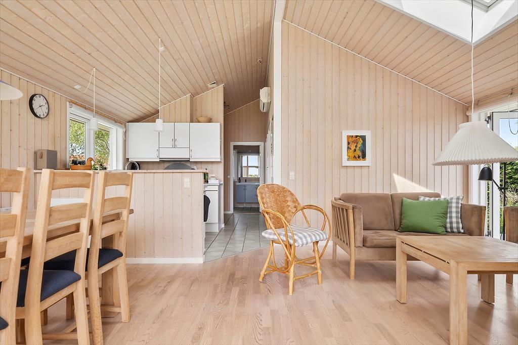 Tritt ein in ein helles und modernes Ferienhaus, das pure Urlaubsidylle und Entspannung ausstrahlt. Hohe Decken, große Fensterfronten und ein wunderbares Gefühl von Licht und Luft schaffen eine einladende Atmosphäre. Das Haus verfügt über drei schöne Schlafzimmer, eine offene Küche in Verbindung mit dem Wohnzimmer und ein praktisches Badezimmer – alles gemütlich eingerichtet mit Fokus auf Komfort und gemeinsame, entspannte Momente.