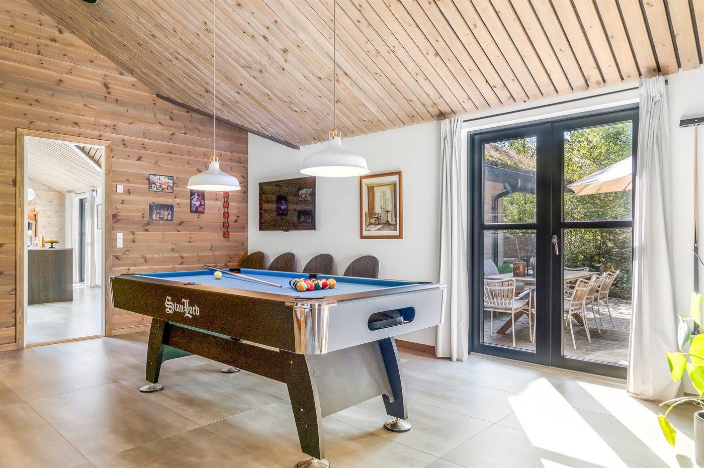 Auch im Inneren des Hauses kannst du Entspannen aber auch Aktiv sein. Genieße das warme Wasser im Whirlpool, fordere deine Familie oder Freunde bei einer Runde Billard oder Tischfußball im Aktivitätsraum heraus und serviere kühle Getränke aus dem stilvollen Weinkühlschrank.