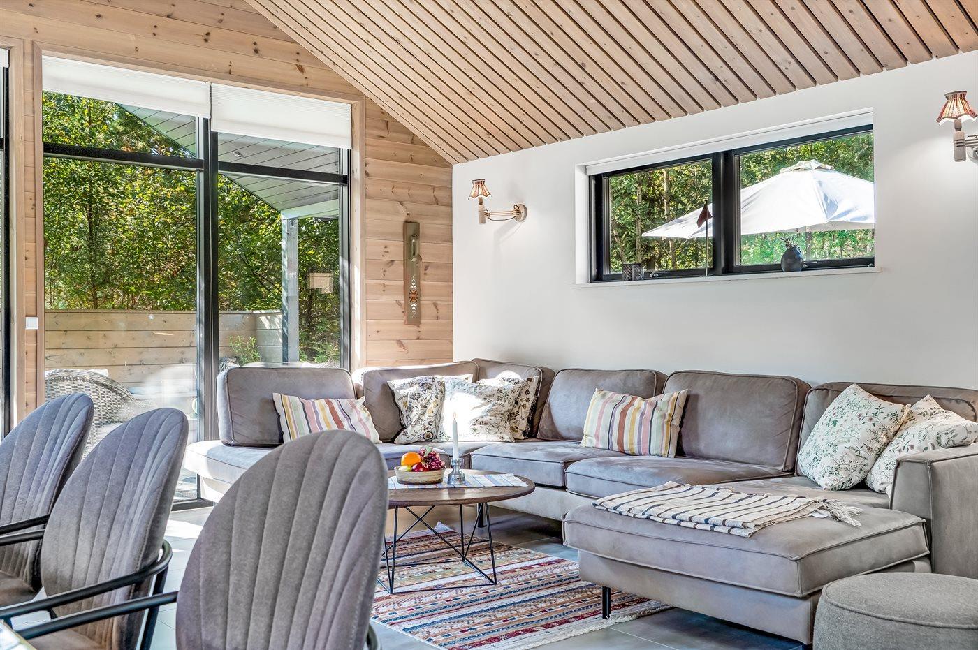 Luxuriöses Ferienhaus nahe Sandstrand mit Whirlpool, Außenküche und Elektroauto-Ladestation in Hals, Dänemark.