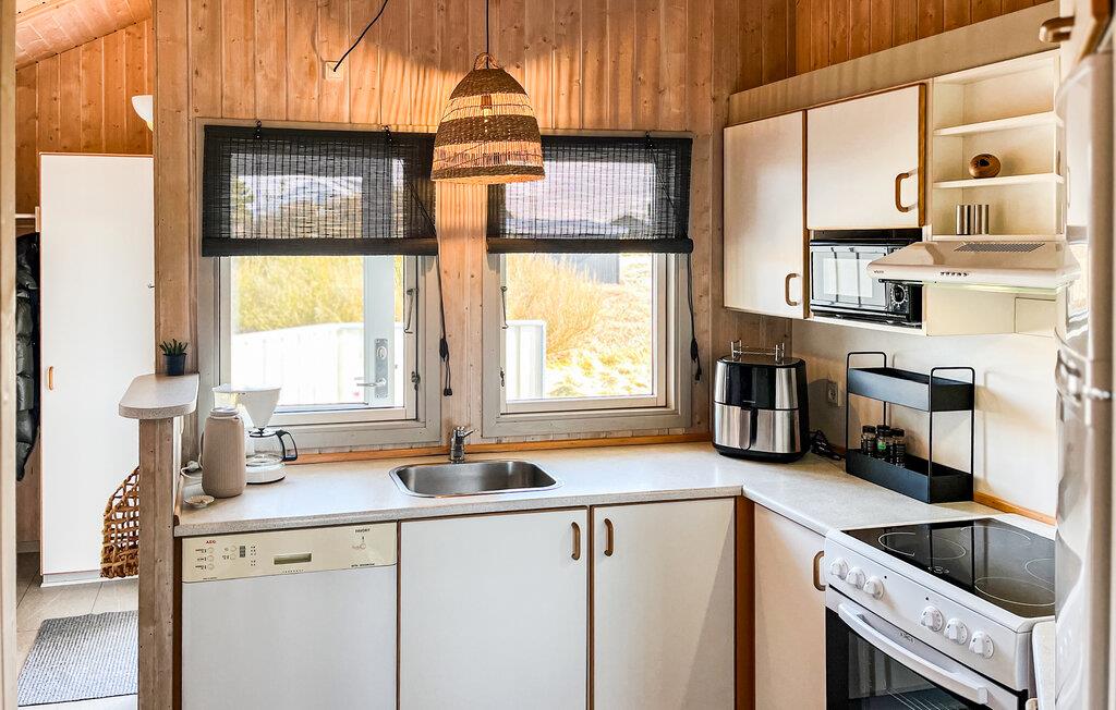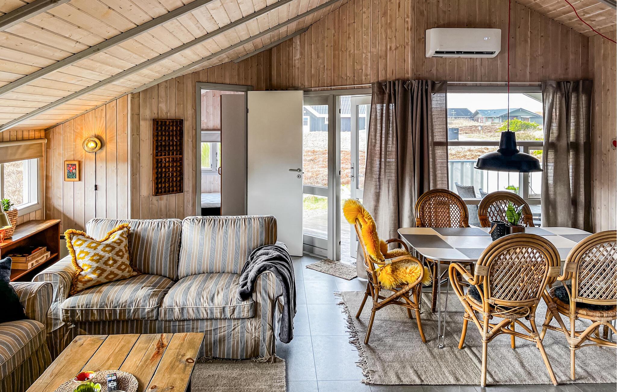 Auf einem Dünengrundstück liegt dieses gemütliche Ferienhaus. In kurzer Entfernung vom Haus befinden sich sowohl das Meer als auch der Fjord. Die Natur und das reichhaltige Vogelleben lassen sich deshalb aus der Nähe betrachten. Das Haus verfügt über zwei teilweise überdachte Terrassen. Morgens können Sie Ihren Kaffee auf der Ostterrasse genießen, während der Westterrasse später am Tag ideal ist. Der lange, weiße Strand bietet viele Möglichkeiten zum Wandern. Nach einem schönen Tag in der frischen Meeresluft können Sie im Whirlpool, in der Sauna oder im Wohnraum mit komfortablen Möbeln entspannen.
