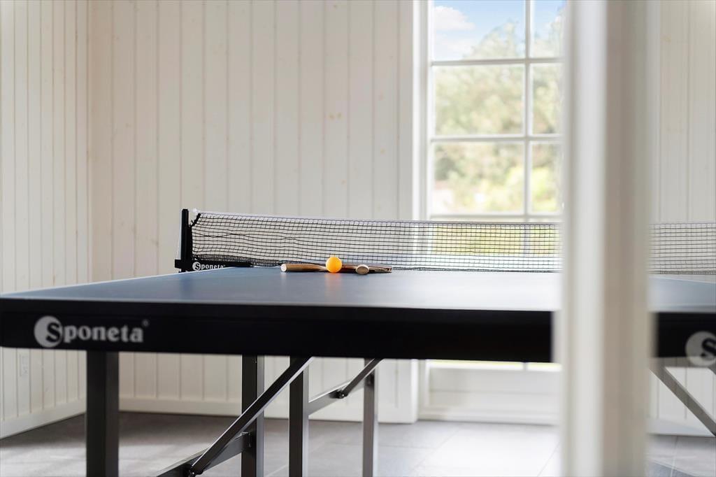 Hinter der dunklen Holzfassade und dem schönen Reetdach erwartet dich ein helles, elegant eingerichtetes Urlaubsdomizil, in dem du herrliche Tage mit deiner Familie oder guten Freunden verlebst. Beide Etagen des Hauses verfügen jeweils über zwei Schlafräume und ein Badezimmer. Mit jeweils einem Aufenthaltsraum im Dachgeschoss und einem im Erdgeschoss, hast du jederzeit die Möglichkeit, dich ein wenig zurückzuziehen. Ruhige Momente, die vom Knistern des Kaminofens untermalt werden, genießt du beispielsweise mit einem guten Buch auf dem Sofa im oberen Aufenthaltsraum. Oder wie wäre es mit einem entspannten Bad im Whirlpool und mit erquickenden Saunagängen? Der Küchen-, Wohn- und Essbereich im Erdgeschoss fungiert als sozialer Treffpunkt - ganz gleich, ob ihr zusammen die Mahlzeiten zubereitet, Gesellschaftsspiele spielt oder einen Film auf dem großen Flachbild-TV anschaut. Für Spaß und Abwechslung sorgt zwischendurch eine Runde Tischtennis im angrenzenden Aktivitätsraum.