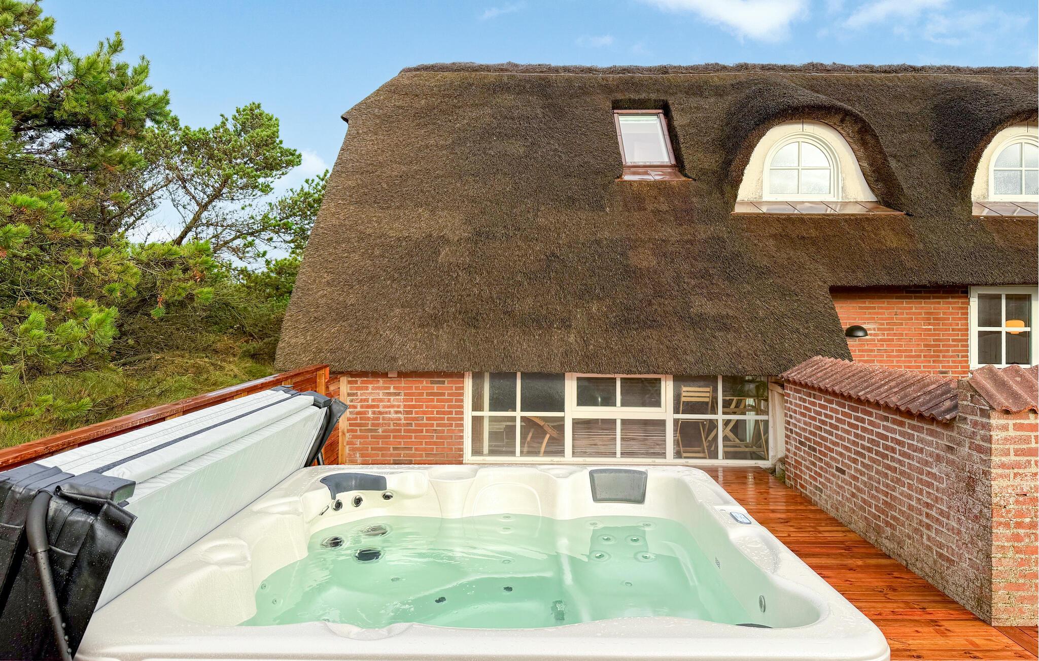 Erleben Sie ein luxuriöses Ferienhaus in Blåvand mit Meerblick, Swimmingpool, Whirlpool und Sauna für erholsame Tage.