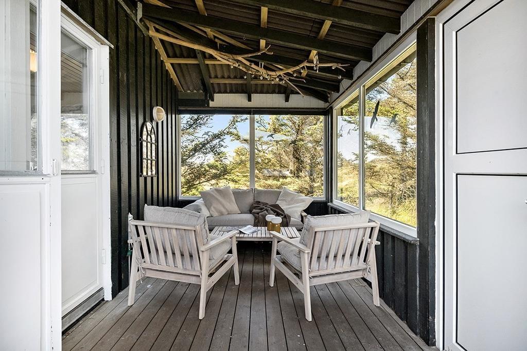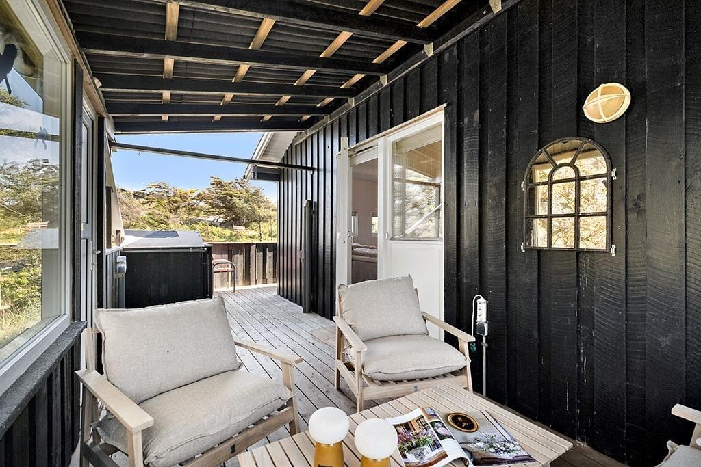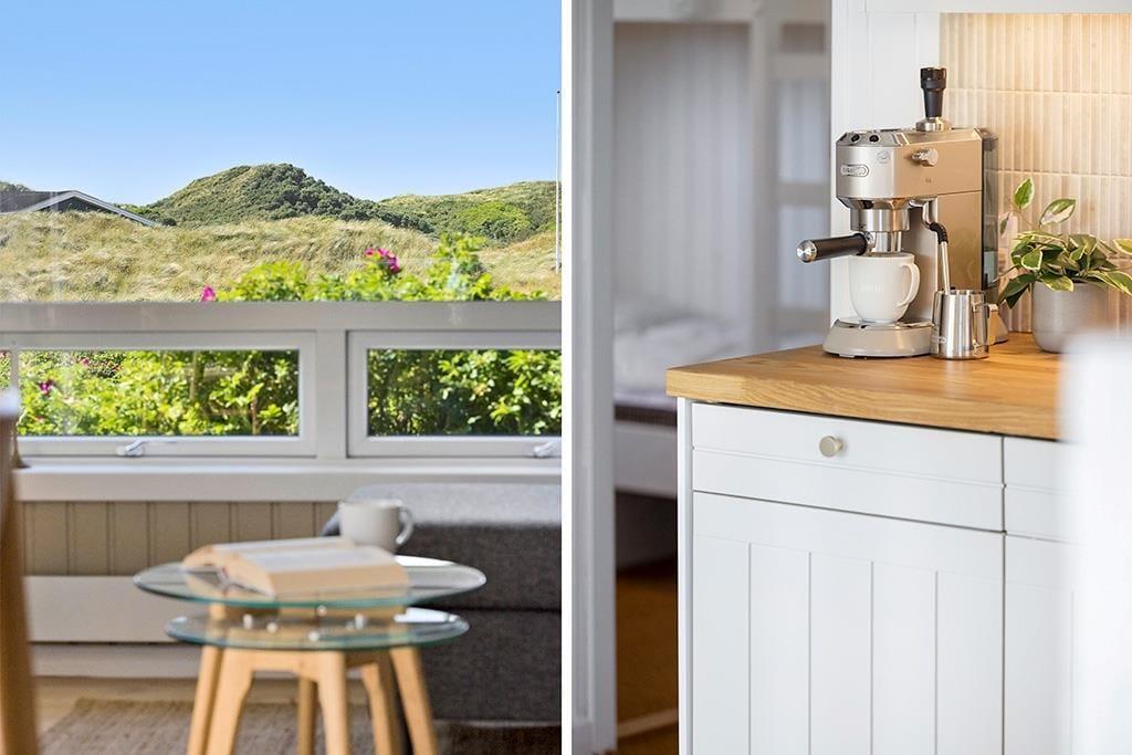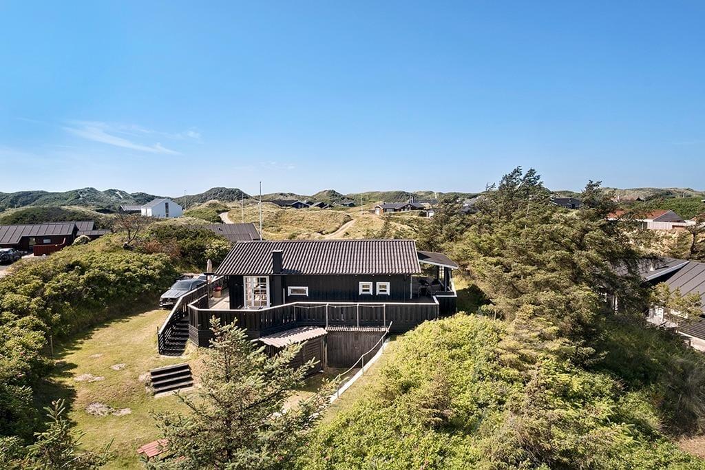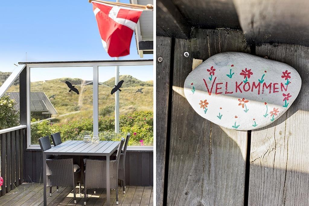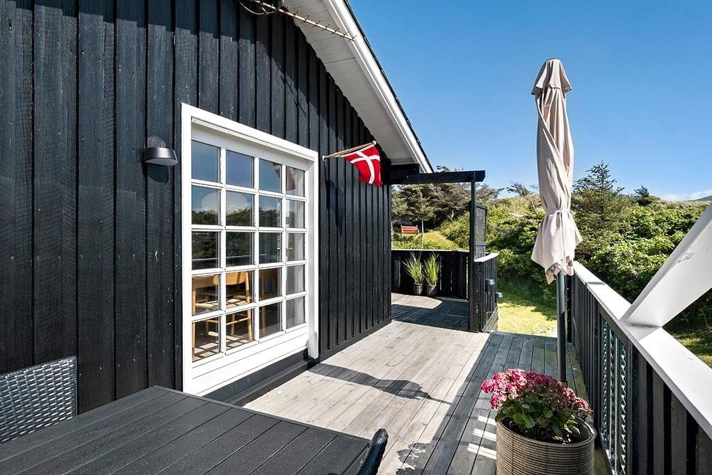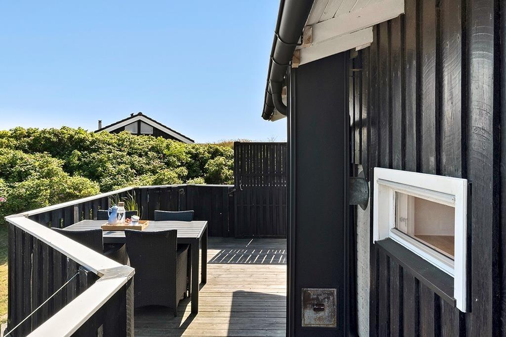 Im Außenbereich bietet das Ferienhaus eine schöne Terrasse, auf der du die Sonne und die frische Meeresluft genießen kannst. Die Terrasse ist teilweise überdacht, sodass du auch bei wechselhaftem Wetter draußen sitzen kannst. Von der Terrasse aus hast du einen herrlichen Blick auf die umliegenden Dünen – der perfekte Ort, um den Tag mit einer Tasse Kaffee zu beginnen oder ihn mit einem Glas Wein im Sonnenuntergang ausklingen zu lassen. Das umliegende Naturgrundstück bietet Kindern die Möglichkeit zum Spielen und Entdecken, während die Erwachsenen entspannen und die Ruhe genießen können.