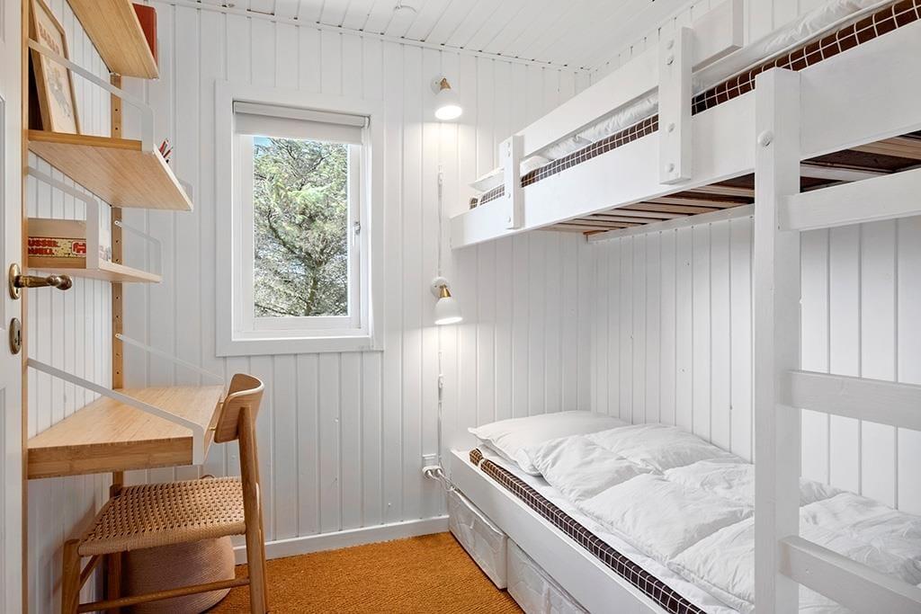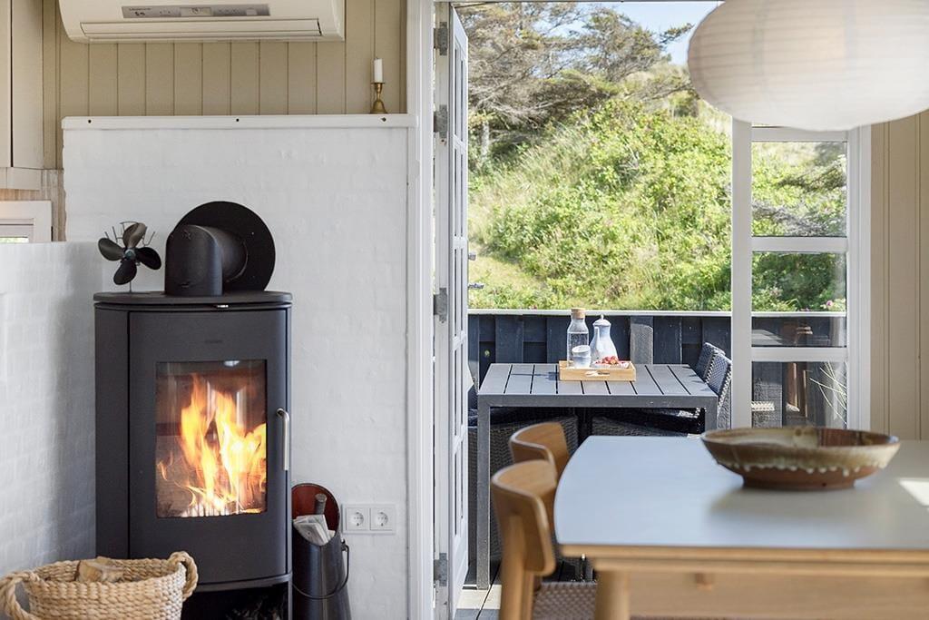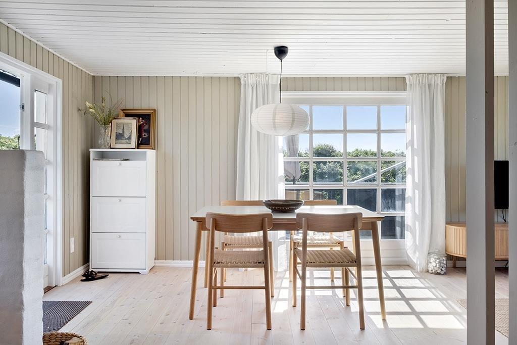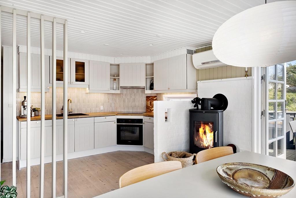 Beim Betreten dieses gemütlichen Ferienhauses empfängt dich eine warme und einladende Atmosphäre, die echte Sommerhaus-Idylle ausstrahlt. Die hellen Holzwände und das natürliche Licht schaffen eine entspannte Stimmung, in der du dich sofort wie zu Hause fühlst. Das Wohnzimmer ist mit komfortablen Möbeln und einem Kaminofen ausgestattet, der zu gemütlichen Abenden mit Spielen, Büchern oder einem guten Film einlädt. Die offene Küche ist funktional und gut ausgestattet, sodass du problemlos leckere Mahlzeiten für die Familie zubereiten kannst. Die Schlafzimmer sind einfach eingerichtet und bieten Ruhe und Komfort nach einem erlebnisreichen Tag.