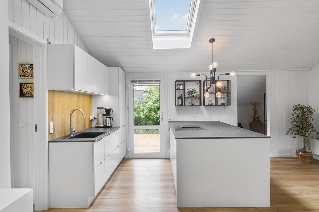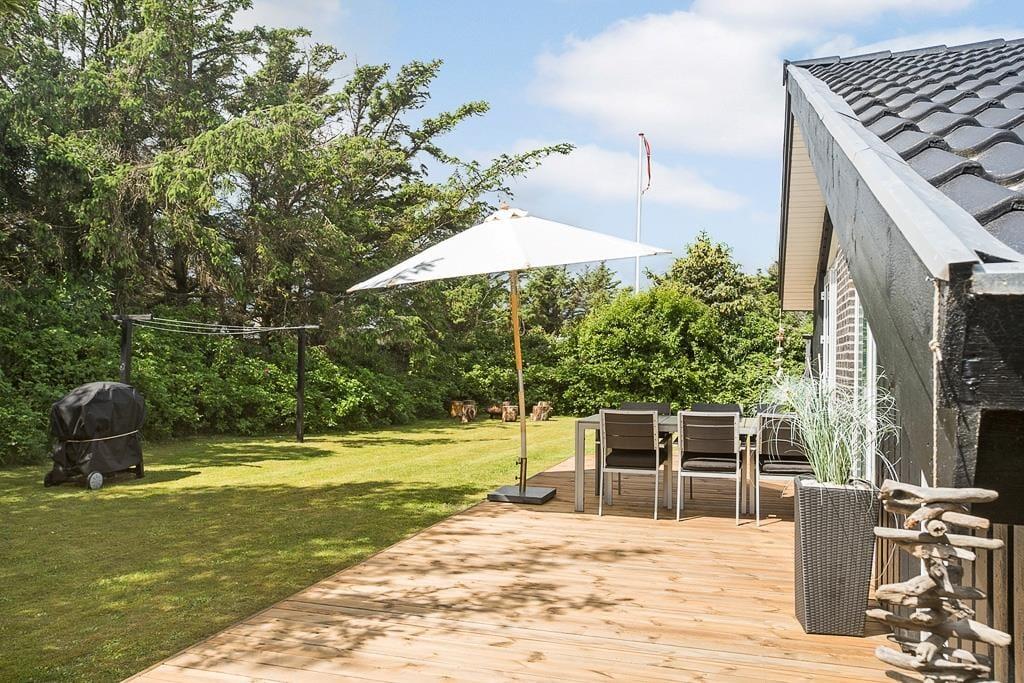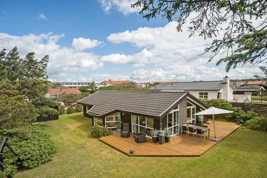 Im Jens Bærentsvej 19 erwartet dich ein helles und großzügiges Ferienhaus, das modernen Komfort mit klassischem Ferienhausgefühl verbindet. Hohe Decken und große Fenster sorgen für Licht und Weite, während die Terrasse draußen zu gemütlichen Stunden in der Sonne einlädt. Durch die zentrale Lage im Herzen von Blokhus wohnst du hier nah am Strand, an der Stadt und mitten in der Natur.