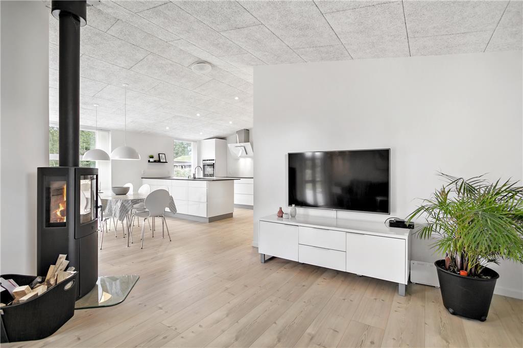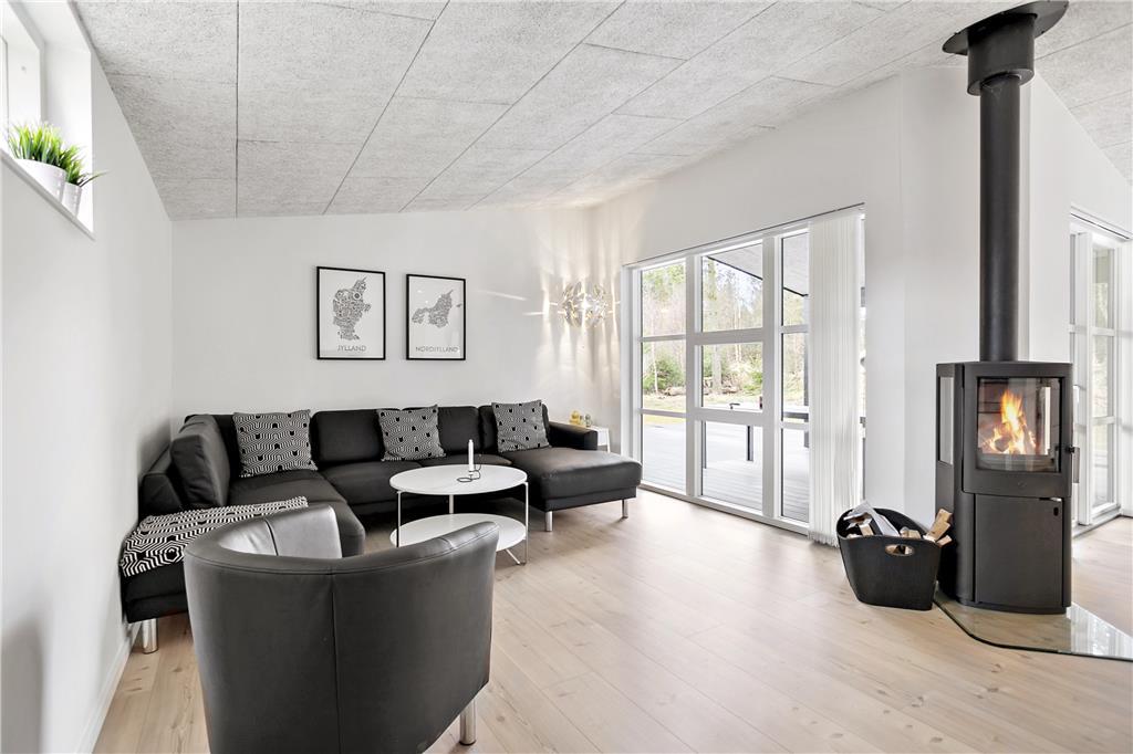 Sobald du das Ferienhaus betrittst, wirst du von einer modernen und stilvollen Einrichtung begrüßt, bei der helle Farben und große Fenster für eine offene und einladende Atmosphäre sorgen. Der großzügige Küchenbereich ist der perfekte Treffpunkt für die ganze Familie. Mit einem großen Esstisch ist viel Platz für gemütliche Abendessen und lustige Spielabende. Das Wohnzimmer ist ebenfalls hell und offen, und hier findest du einen Kamin, der für eine besonders gemütliche Atmosphäre sorgt, wenn du dich nach einem abenteuerlichen Tag entspannst. Das Ferienhaus bietet auch mehrere Schlafzimmer, die alle stilvoll eingerichtet sind und für einen guten Schlaf sorgen, damit du bereit für einen neuen Tag voller Erlebnisse bist.