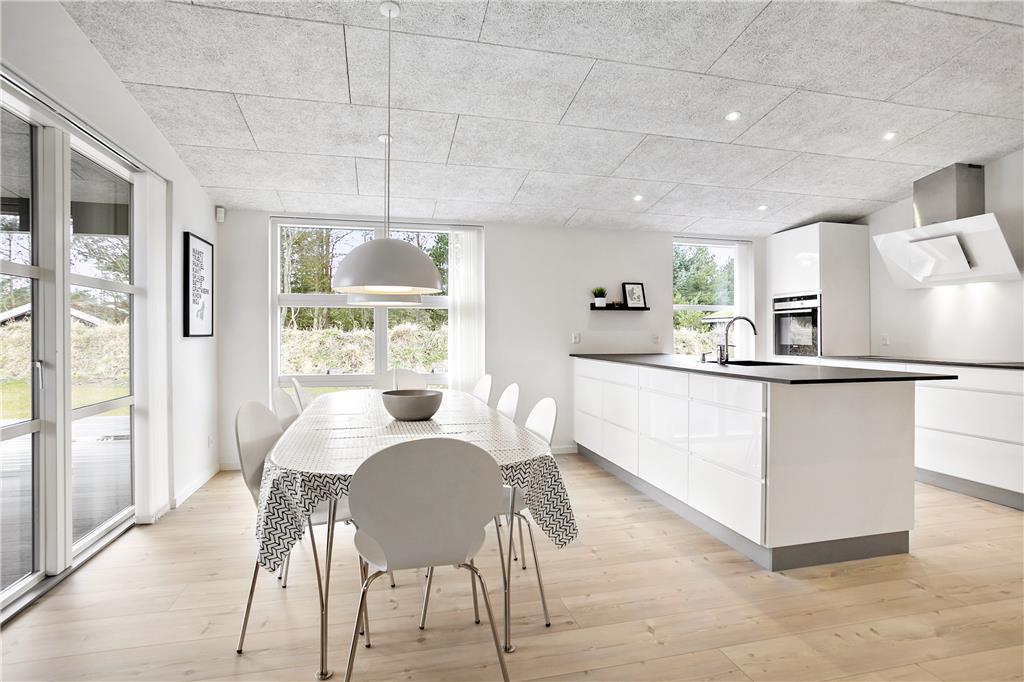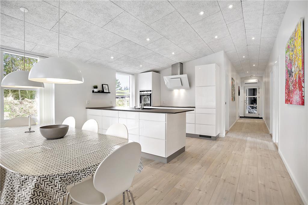 Dieses moderne und stilvolle Ferienhaus in Bloksbjerg 17 B, Blokhus Strand, bietet Komfort und Platz für einen entspannten Urlaub mit der ganzen Familie oder guten Freunden. Das Haus kombiniert eine helle, offene Einrichtung mit einem großen Küchenbereich, einem gemütlichen Kamin im Wohnzimmer und einem schönen Garten, der viel Platz für Spiele und Entspannung bietet. Die Lage ermöglicht es dir, das ruhige Leben im Freien mit einem Besuch am Strand oder den zahlreichen Angeboten der Stadt zu verbinden. Kurz gesagt, das Ferienhaus ist der perfekte Ausgangspunkt für deinen Urlaub in Blokhus.