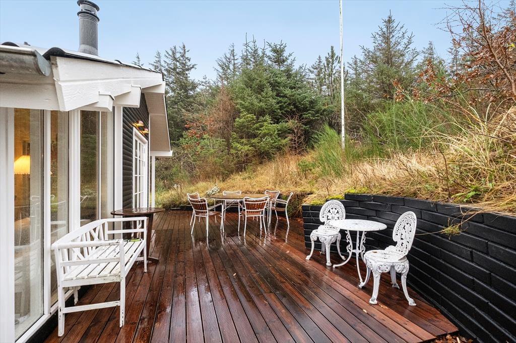 Gemütliches Ferienhaus in Blokhus mit Kamin, Terrasse, Garten und moderner Ausstattung, ideal für erholsame Urlaubstage.