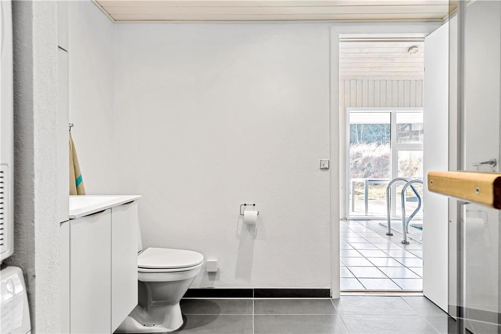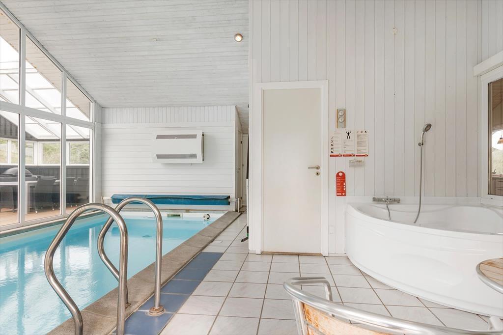 Poolraum: Vom Wohnbereich betreten Sie den tollen Poolraum mit Panoramafenstern und Blick über das tolle Dünengrundstück. Hier haben Sie ein 16 m² großes Wasserbecken mit Gegenstromanlage, Whirlpool und Zugang zur Sauna mit Kräutern, Infrarot sowie wahlfreiem Temperatur- und Feuchtigkeitsniveau. Das Wasser im Pool wird mit einer Wärmepumpe erwärmt und somit reduzieren die beiden Wärmepumpen deutlich den CO²-Ausstoß und die Verbrauchskosten um bis zu 80%. Außerdem gibt es ein großes Badezimmer mit Duschkabine, in der Sie sitzen können und zwischen Dampf, Tropenregen und Wasserfall aus dem Duschkopf entscheiden können. Es sind genügend Wahlmöglichkeiten für Kinder und Erwachsene vorhanden.
