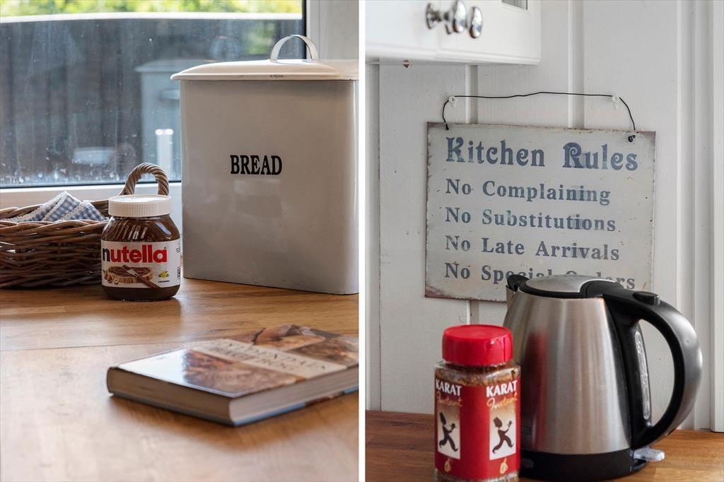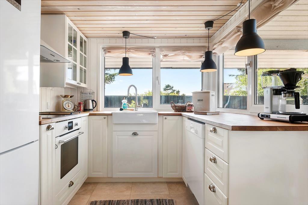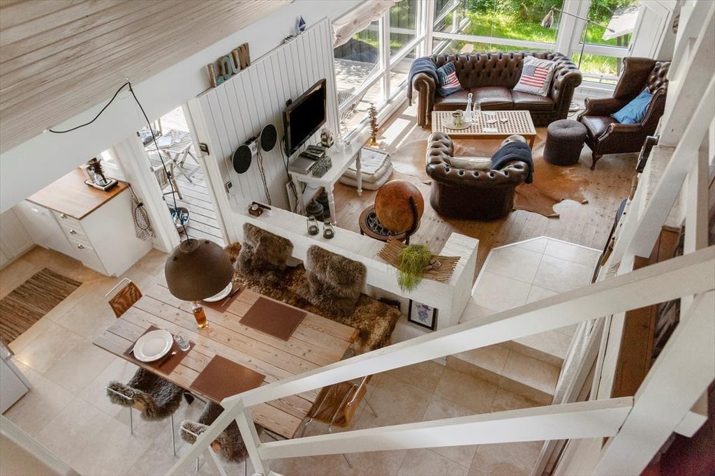 Der durchdachte Grundriss des Ferienhauses schafft eine angenehme und einladende Atmosphäre. Der helle Wohnraum mit großen Fensterfronten lässt die Natur ins Haus und schafft eine wunderbare, ruhige Stimmung. Hier kannst du mit der Familie gemütliche Mahlzeiten am Esstisch genießen oder dich mit einem guten Buch auf dem Sofa entspannen. Die moderne und funktionale Küche macht es dir leicht, nach einem Tag am Strand oder einem Ausflug in die Umgebung leckere Mahlzeiten zuzubereiten. Der Kamin im Wohnzimmer ist der perfekte Treffpunkt an kühleren Abenden, wo du die Wärme und Gemütlichkeit im ganzen Haus spüren kannst.