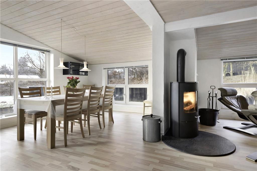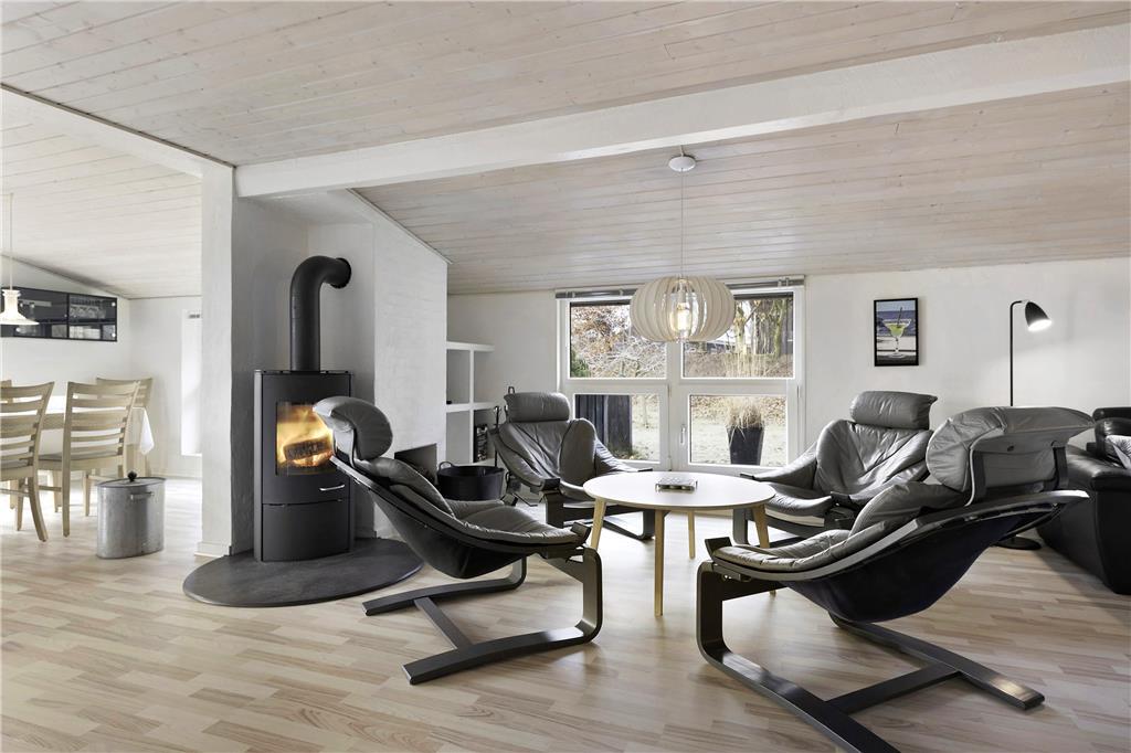 Dieses Ferienhaus bietet genügend Platz für zwei Familien. Hier können bis zu sechs Personen übernachten, verteilt auf zwei Schlafzimmer im Haupthaus sowie eins im Nebenhaus. Das stilvolle Badezimmer befindet sich mitten im Haus und der große, offene Wohnbereich mit Esszimmer, Wohnzimmer mit Kamin und TV. Wunderbare Rahmenbedingungen für jede Urlaubsform!