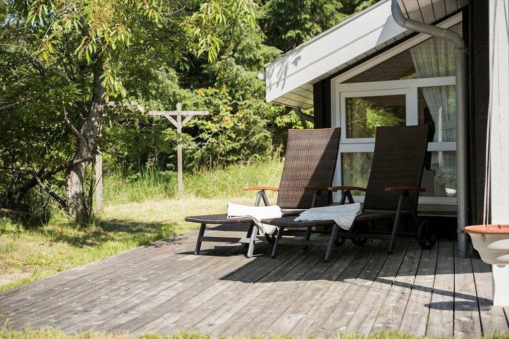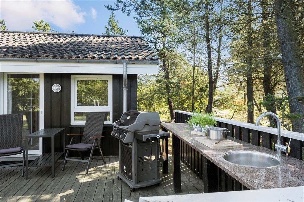Bei schönem Wetter werden Sie einen Großteil Ihrer Urlaubstage draußen auf der Holzterrasse verbringen. Die Terrasse ist groß und bietet Aufenthaltsplätze in Richtung Osten, Süden und Westen. Ein Teil der Terrasse ist überdacht und spendet auf Wunsch kühlen Schatten und Schutz nach Einbruch der Dunkelheit. Dank des Grills und der Außenküche mit einer Arbeitsplatte und einer Spüle werden Sie schöne, stimmungsvolle Grillabende genießen. Es ist herrlich, sich in aller Ruhe auf den Gartenmöbeln niederzulassen und den Kindern beim ausgelassenen Toben und Ballspielen auf der großen Grasfläche zuzuschauen.