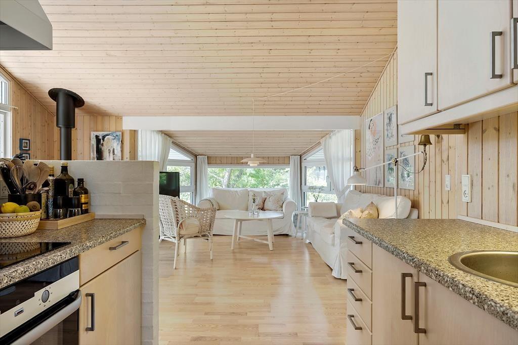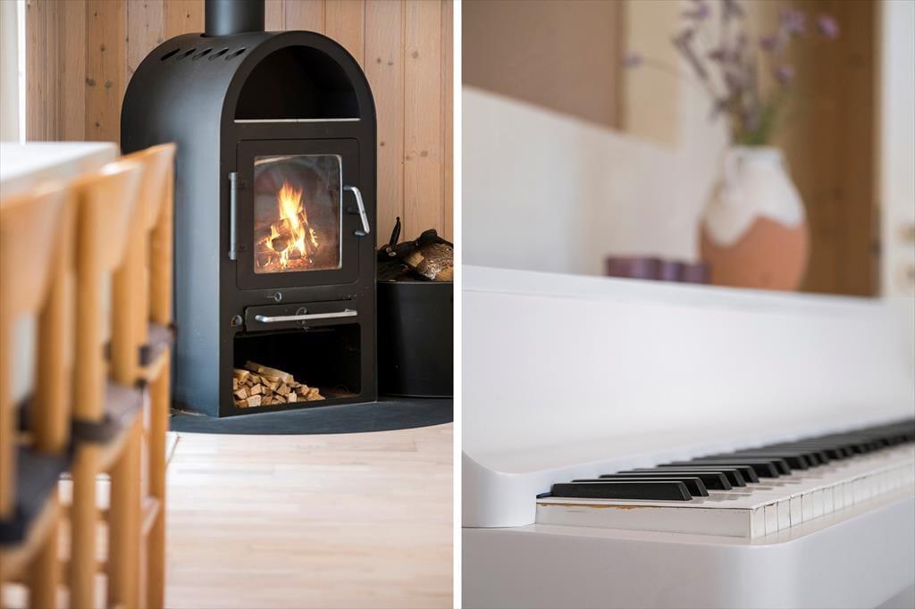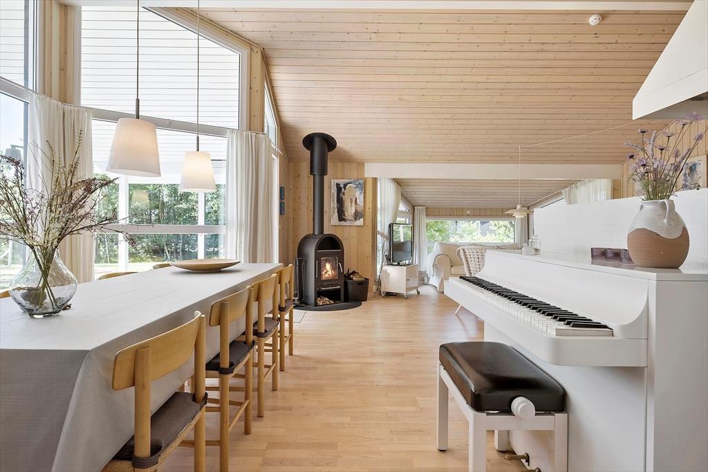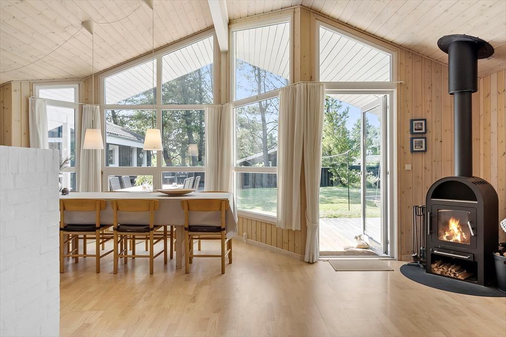 Das 94 m² große Haus für bis zu sechs Personen beinhaltet zwei Badezimmer, von denen das größere über einen Whirlpool und eine Sauna sowie über eine Waschmaschine und einen Wäschetrockner verfügt. Einer der drei Schlafräume präsentiert sich als gemütliches Kinderzimmer. Bei schlechtem Wetter können Ihre Kinder hier spielen oder am kleinen Tisch malen. Zum zentralen Sammelpunkt aller Mitreisenden wird im Nu der schöne helle Wohnraum mit seinen hohen Decken und großen Fensterpartien avancieren, der offen mit der gut ausgestatteten Küche verbunden ist. An warmen Tagen sorgt die Wärmepumpe mit integrierter Kühlfunktion für angenehme Raumtemperaturen. Den Rest des Jahres über genießen Sie gemütliche Stunden in der Polstersitzgruppe vor dem Kaminofen.