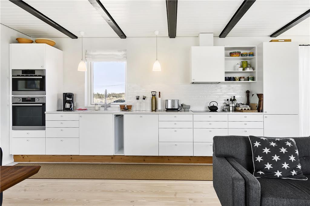 Ein Aufenthalt in diesem Ferienhaus verspricht Entspannung und Verwöhnen. Wir empfehlen dieses Haus vor allem Paare, die vor dem Alltagsstress entfliehen oder einen Urlaub in ruhiger und naturnaher Umgebung verbringen möchten. Das Haus verfügt über 105 m² Wohnfläche, die sich auf Eingangsbereich, zwei Badezimmer, ein Schlafzimmer und einen offenen Wohnbereich mit integrierter Küche und Wohnzimmer verteilen. Die Einrichtung ist geprägt von den vielen Fenstern, die unvergleichliche Lichtverhältnisse bieten. Im Wohnzimmer können Sie auf dem großen “Day bed” liegen und die wunderbare Natur beobachten oder im Sessel ein spannendes Buch lesen, während der Kamin den Raum mit Wärme füllt. Inventar, Möbel, Kunstgegenstände und Textilien wurden sorgfältig ausgewählt und aufeinander abgestimmt, die zusammen auch eine warme und freundliche Atmosphäre schaffen, in der Sie neue Energie laden und sich erholen können. Es sind auch mehrere Brettspiele vorhanden, die mitbenutzt werden dürfen. Außerdem stehen WLAN und TV mit dänischen, deutschen und skandinavischen Sendern zur Verfügung. Allgemein ist das Haus hervorragend und modern ausgestattet, so dass ein komplikationsloser und angenehmer Aufenthalt garantiert ist. Besonders hervorzuheben ist, dass das Haus allergikerfreundlich ist.