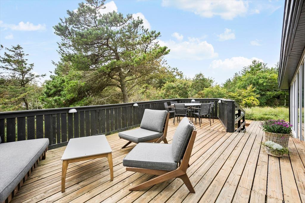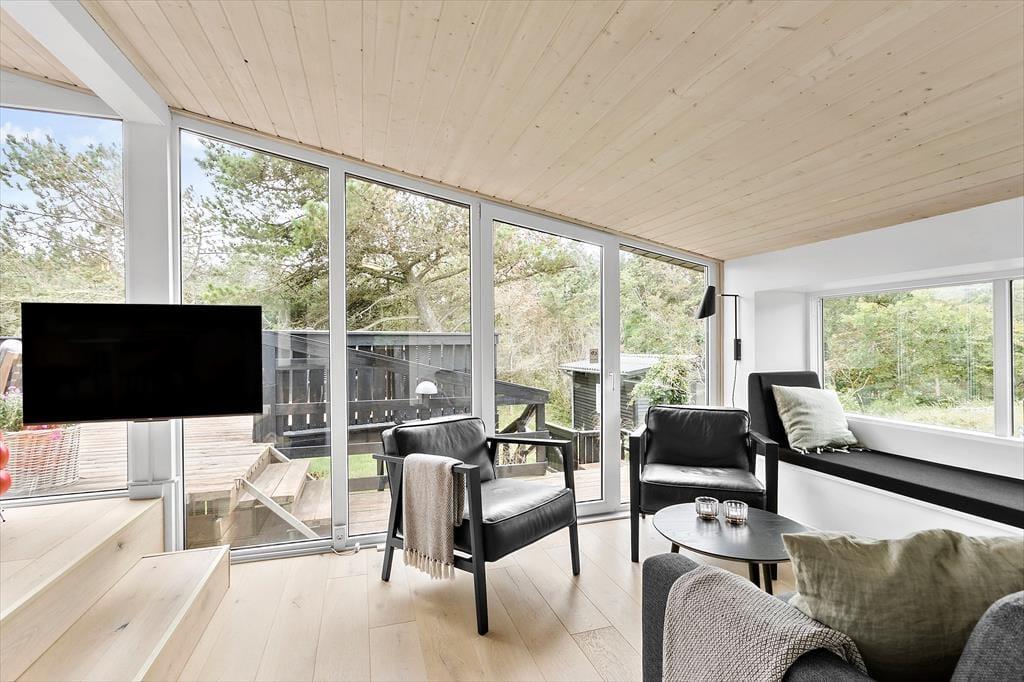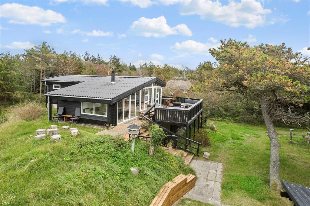 Einige Ferienhäuser heben sich von der Menge ab. Dies gilt definitiv für dieses Ferienhaus in der Havtørns Alle 32. Das Urlaubsdomizil besticht durch seine ausgefallene Architektur und seine stilvolle Einrichtung. Darüber hinaus begeistert es mit einer fantastischen Lage - versteckt im Wald und dennoch in der Nähe der Nordsee und der Badeortes Blokhus.