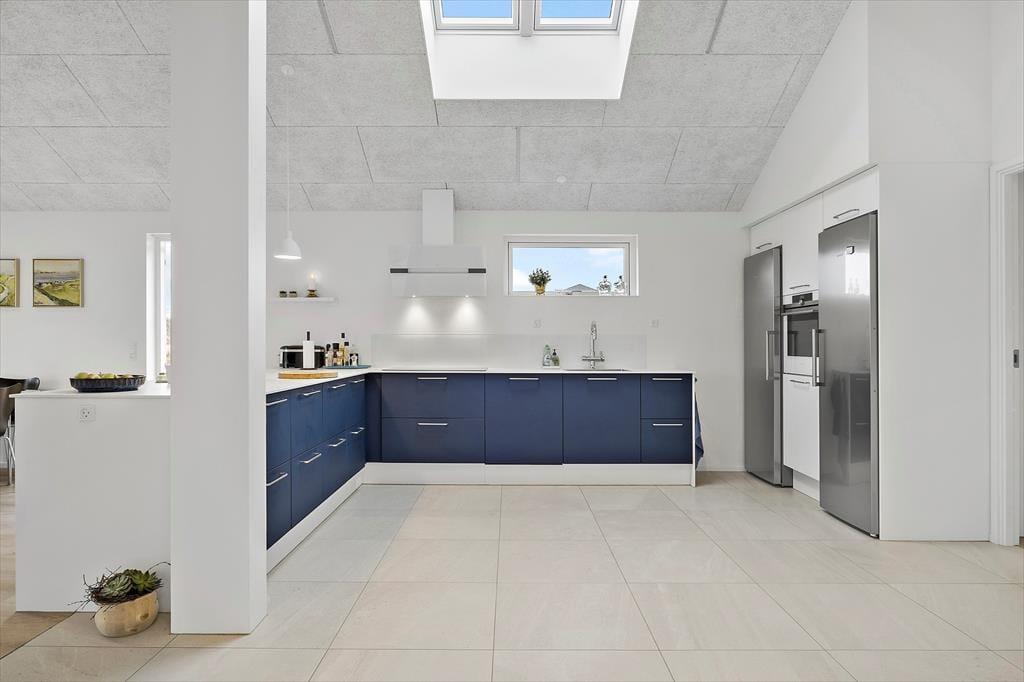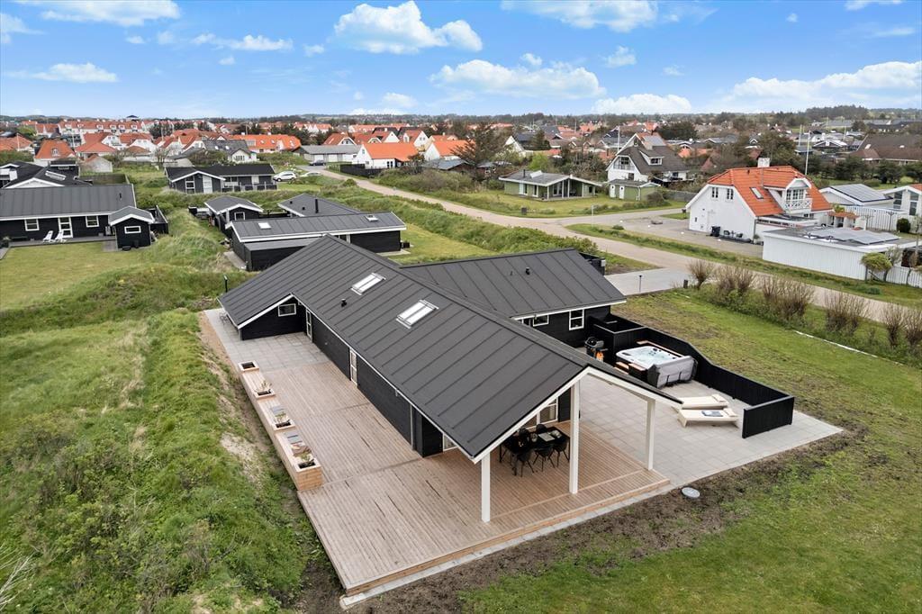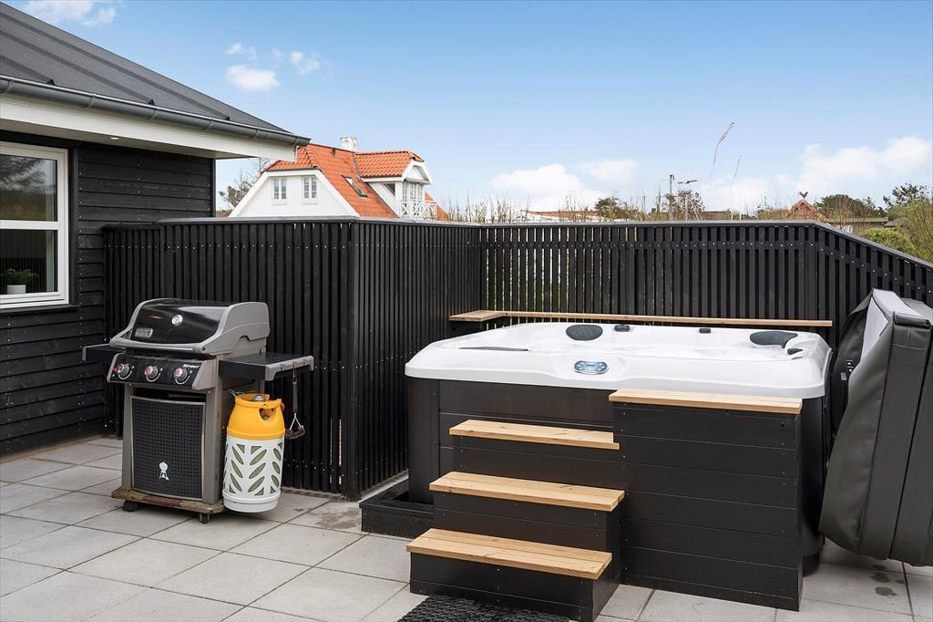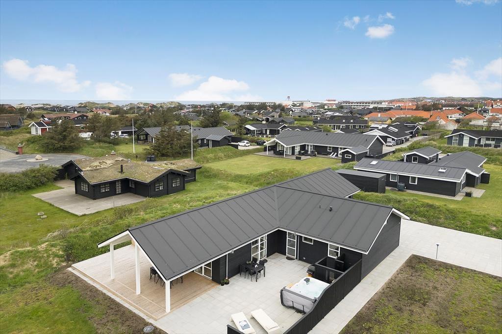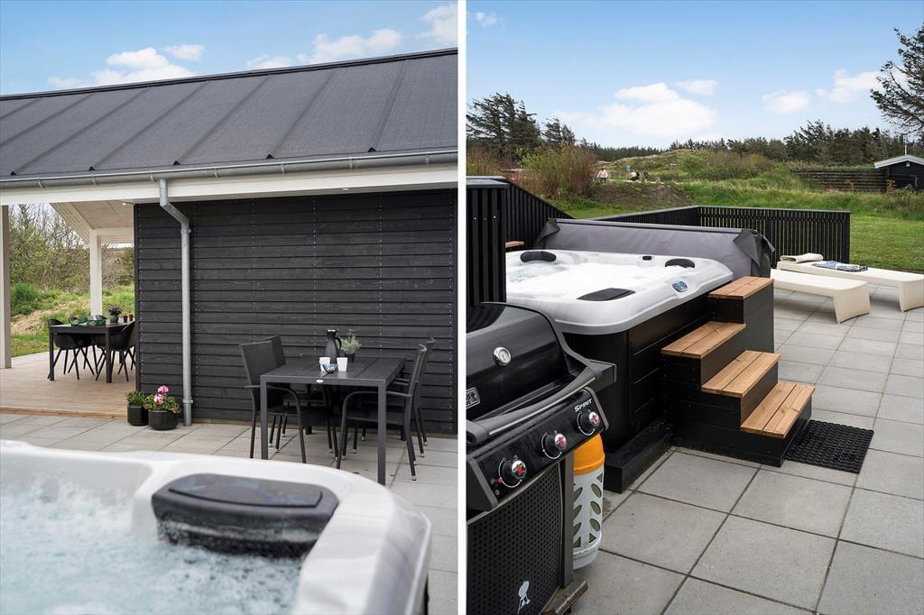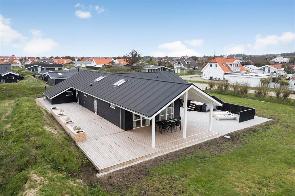 In diesem stilvollen Ferienhaus auf der Ribergaardsvej 24 kannst du dich auf erholsame Urlaubstage mit allem Komfort freuen. Die Lage ist fantastisch – mitten im Herzen von Blokhus, nur 100 Meter vom Nordseestrand entfernt. Genieße entspannte Stunden im Outdoor-Whirlpool, mach es dir in der großzügigen Sauna gemütlich oder relaxe auf der sonnigen Terrasse – all das wartet hier auf dich.