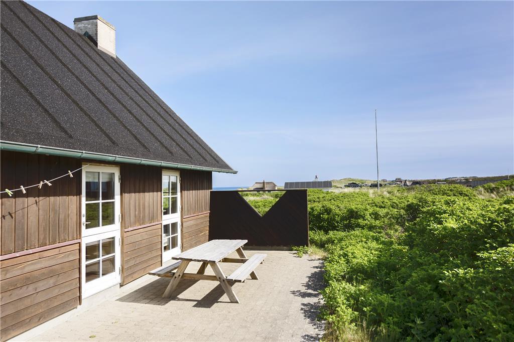 Das Ferienhaus beeindruckt mit seiner leicht erhöhten Lage in der ersten Dünenreihe. Diese ermöglicht Ihnen einen fantastischen Ausblick vom Wohnbereich und von der offenen Terrasse. Zwischen dem Haupthaus und dem Nebengebäude befindet sich ein abgeschirmterer Terrassenbereich mit gutem Windschutz aufgrund einer hohen Düne. Gartenmöbel, Liegestühle und ein Grill stehen Ihnen selbstverständlich zur Verfügung, sodass vielen erholsamen und entspannten Stunden inmitten der wunderschönen Landschaft nichts im Wege steht.