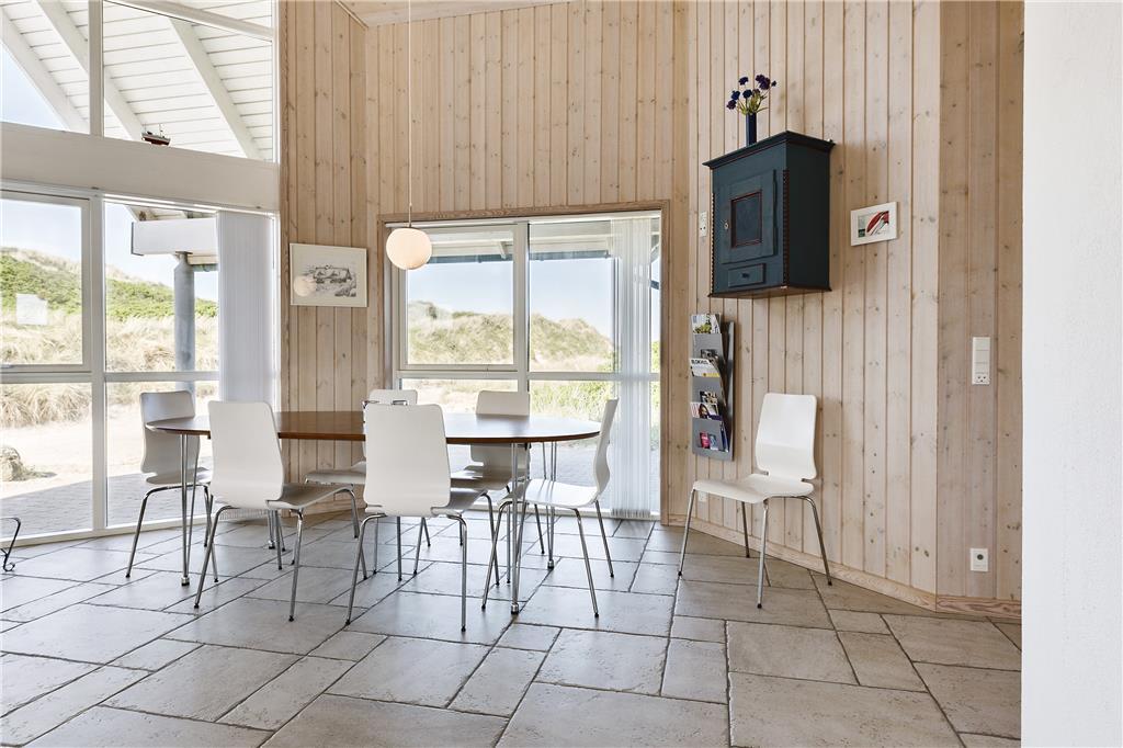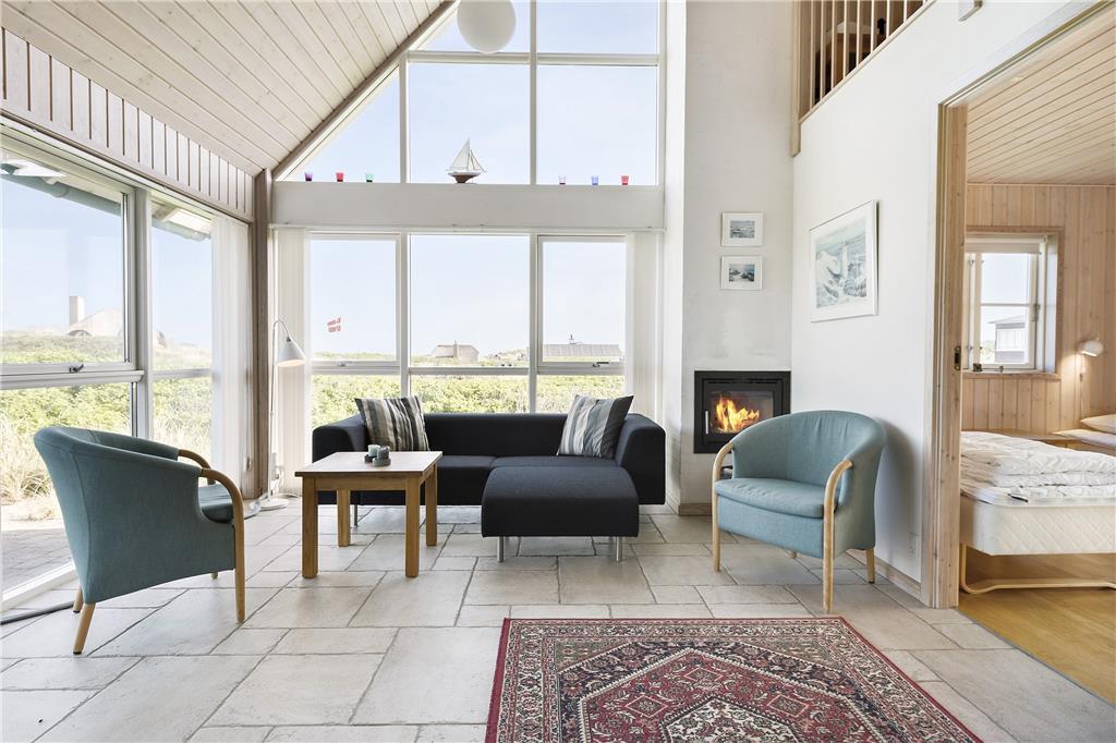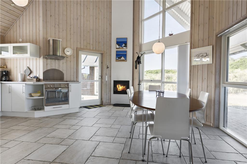 Der Innenbereich dieses reizenden Hauses empfängt Sie mit einer gemütlichen Einrichtung, vielen modernen Ausstattungsgegenständen, ansprechenden Möbeln und einer grandiosen Aussicht über die Landschaft und die nur 50 Meter entfernte Nordsee. Das Ferienhaus ist sehr gepflegt und eignet sich hauptsächlich für einen Urlaub zu Zweit oder auch für einen Urlaub zweier befreundeter Paare. Die offene Küche bildet eine harmonische Einheit mit dem Wohnbereich. Dieser beeindruckt aufgrund der großen Panoramafenster mit einem wunderschönen Ausblick. Die Schlafplätze verteilen sich auf drei gute Schlafräume, von denen zwei mit jeweils einem Doppelbett ausgestattet sind. Im dritten Schlafraum sind zwei Einzelbetten untergebracht. Hinzu gesellen sich ein Badezimmer und ein Hauswirtschaftsraum mit zusätzlicher Arbeitsfläche, einer Waschmaschine und einem Wäschetrockner. Das Ferienhaus bietet auch ein 15 M Hems an. Der zwischen Küche und Essplatz platzierte, große und moderne Kamin, vollendet das gemütliche Ambiente. WLAN sorgt an Tagen mit nicht ganz so schönem Wetter für Abwechslung. Zudem haben Sie so die Möglichkeit, schnell und einfach an Informationen über interessante Ausflugsziele und die Region an sich zu gelangen. Bitte bringen Sie ihr eigenes Laptop oder Tablet von zuhause mit. Dieses bezaubernde und gut ausgestattete Ferienhaus erfüllt wirklich alle Kriterien für einen gelungenen Urlaub in Nordjütland!