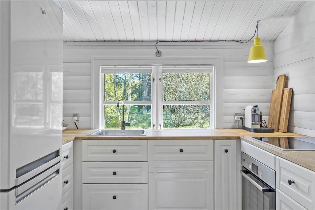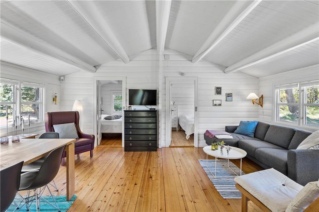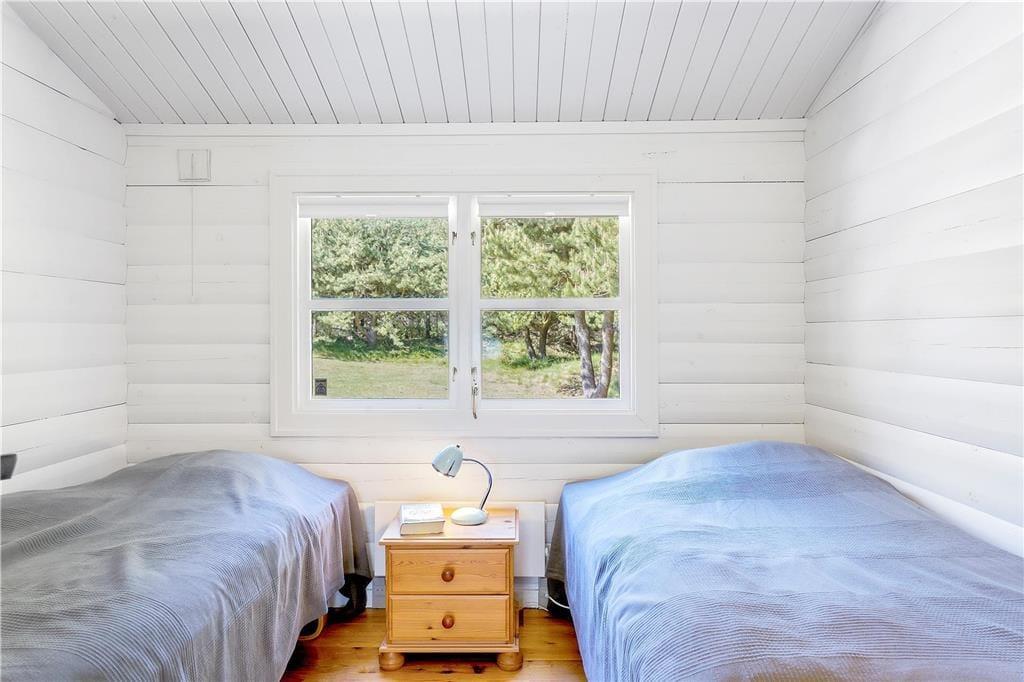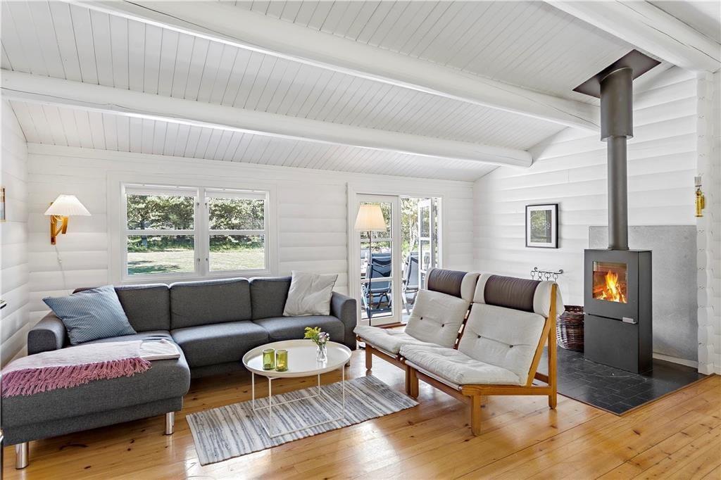 Bei der Gestaltung dieses bezaubernden Ferienhauses standen für den Eigentümer die erholsame Atmosphäre und die Gemütlichkeit an erster Stelle. Das Haus mit einer Wohnfläche von 76 Quadratmetern verfügt über weiße Innenwände aus Holz, die die Räume hell und freundlich wirken lassen. Nach einer umfassenden Renovierung in 2017, erstrahlt der Innenbereich mit seiner Mischung aus modernen und klassischen Möbeln in dezenten Farbtönen, in völlig neuem Glanz. Sie werden sich sicherlich schnell heimisch fühlen. Der Innenbereich ist in eine Küche, einen Wohnbereich mit Essplatz und Sofaecke, vier Schlafzimmer und eine neues renoviert Badezimmer. Die Schlafräume sind für acht übernachtende Gäste ausgelegt. Aufgrund der relativ geringen Wohnfläche empfehlen wir das Haus allerdings lieber einer kleinen Familie oder Paaren. Eine Waschmaschine und ein Geschirrspüler erleichtern Ihnen während Ihres Aufenthalt Ihre alltäglichen Aufgaben. Der Wohnbereich verfügt über einen neue Brennofen, der an kühleren Abenden für behagliche Wärme und Gemütlichkeit sorgt. Im Haus sind auch eine Wärmepumpe. Vergessen Sie nicht Ihr Laptop oder Tablet mitzubringen. Es steht Ihnen eine sehr schnelle Internetverbindung zum Lesen Ihrer Mails oder zum Streamen Ihrer Lieblingsserie zur Verfügung. Auch Informationen über die Region und passende Ausflugsziele sind so jederzeit schnell und bequem verfügbar. Zusammenfassend können wir Ihnen dieses Ferienhaus nur wärmstens empfehlen.